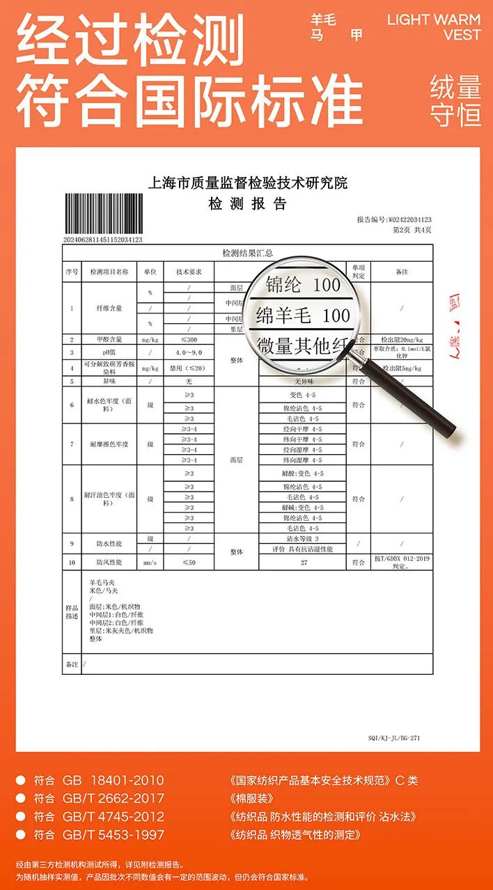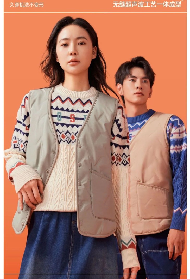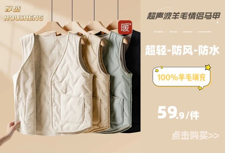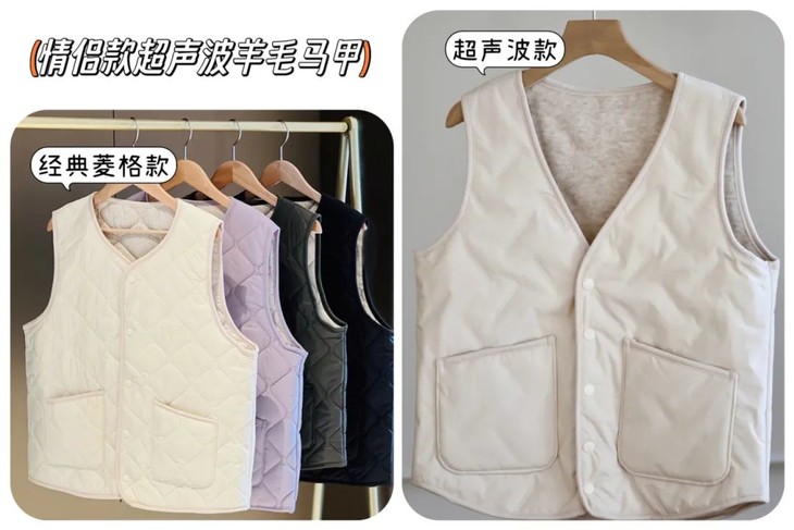 我们团队经过两个月的货比几十家,终于确定了这款三防保暖,轻盈百搭的——厚盛 超声波羊毛马甲男女。