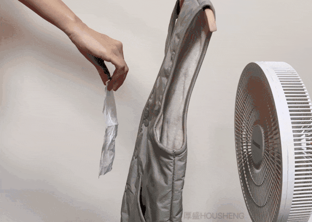 隔着布料吹纸巾测试防风效果,纸巾纹丝不动,冷风很难吹进里层的毛绒。
