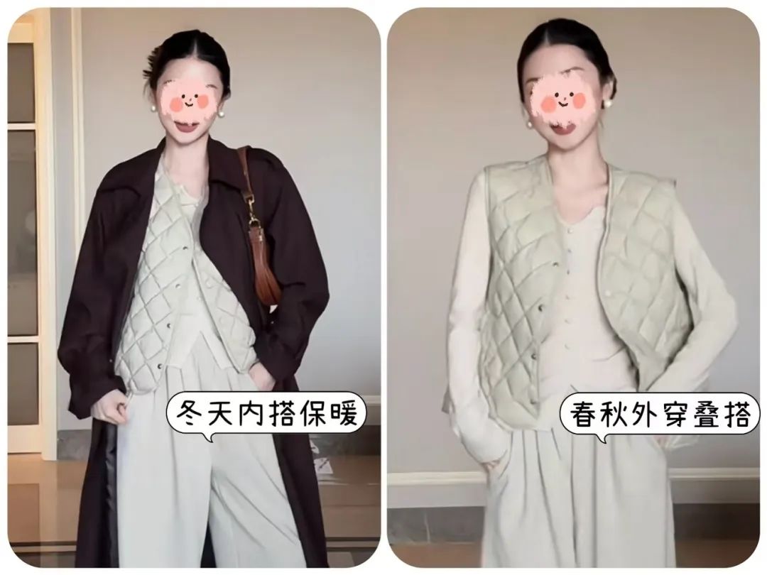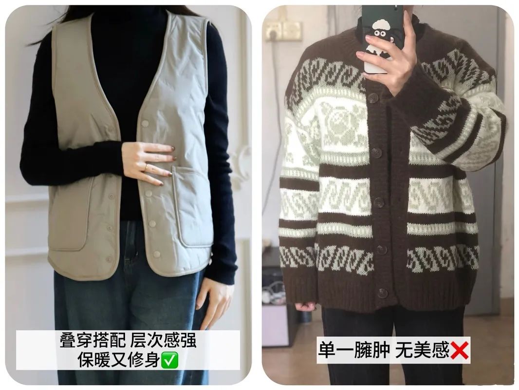 市面上有的马甲太长了会显腿短,太短了又显得太刻意了,一不小心穿出“土感”。