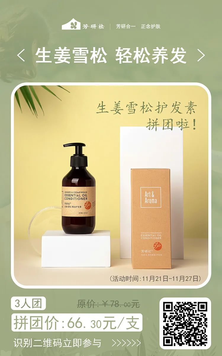 最后,生姜雪松护发素优惠价拼团中,祝福大家都能有一头健康顺滑的头发~