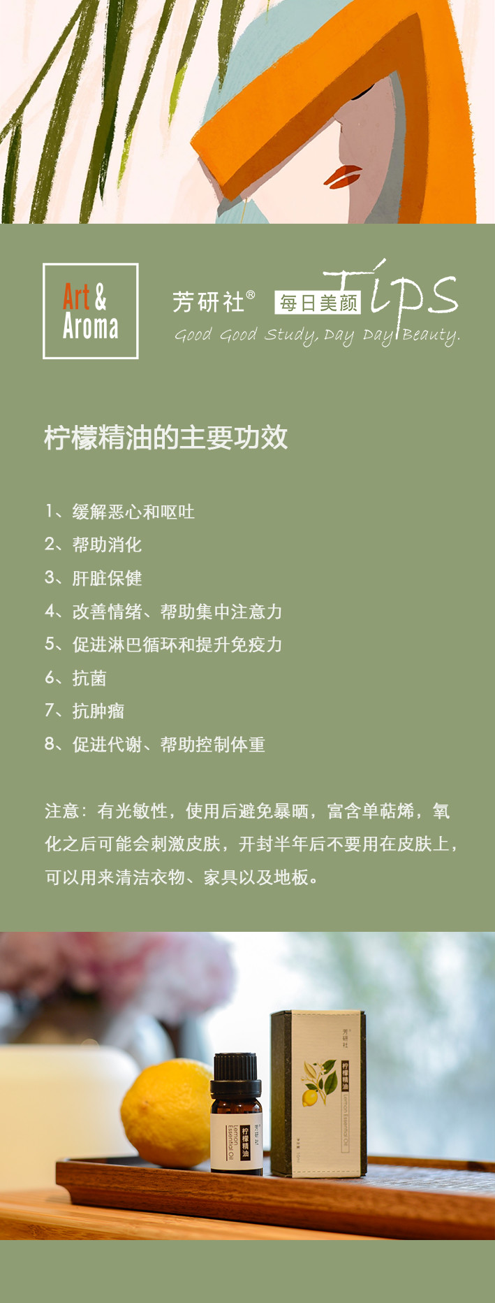 柠檬精油清新气味,让人心旷神怡,只需一滴在扩香仪上,就是一片柠檬的空间~