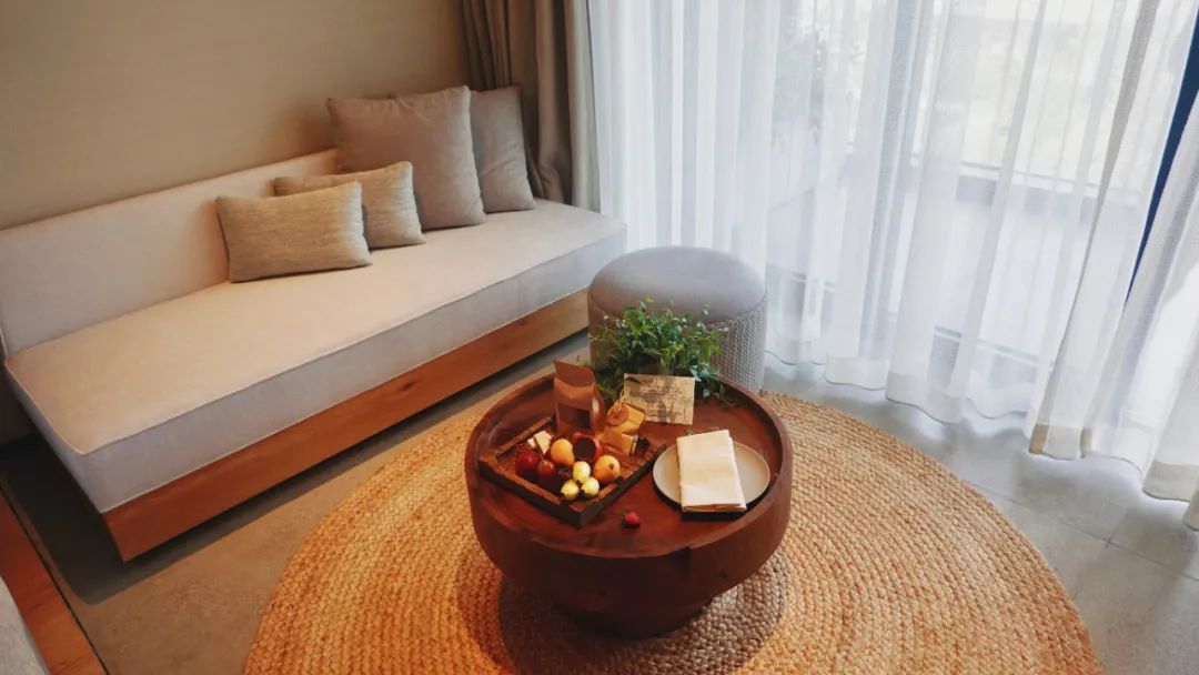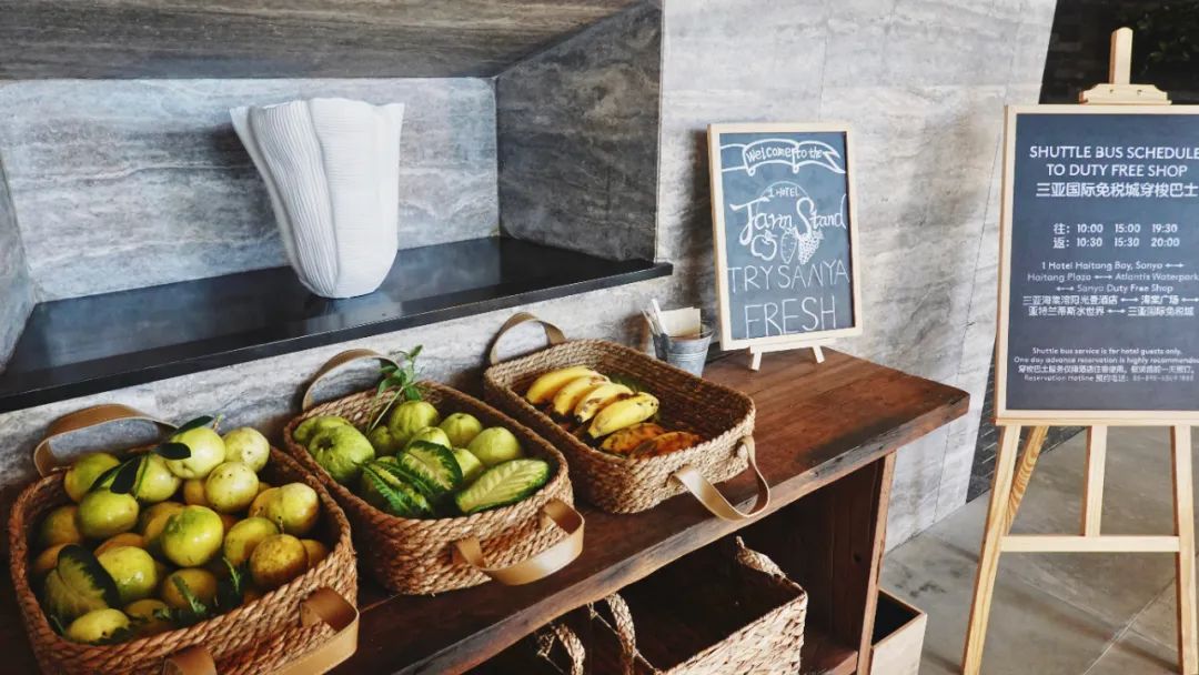 但在阳光壹想减肥,太难!大堂和房间都有来自酒店自家农场的免费水果,后续也会开展农家采摘、喂养小动物等活动🍄!