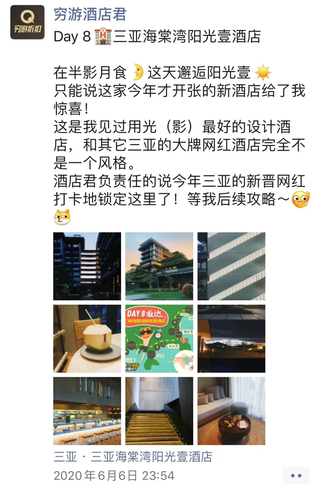 ▲酒店君朋友圈对阳光壹的初评价▲