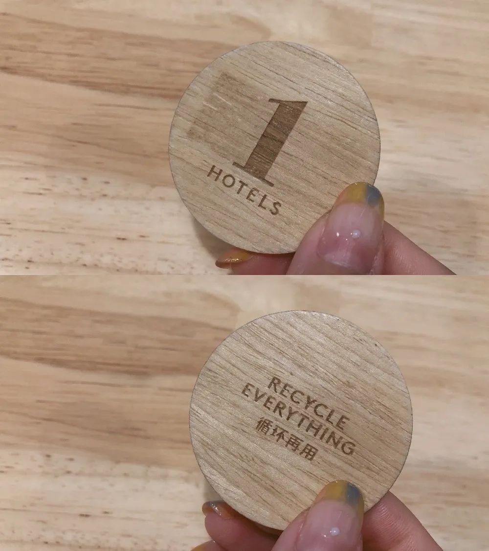 木质圆形的房卡也可循环利用。对有收集房卡癖的酒店君来说,这是一枚不错的收藏!