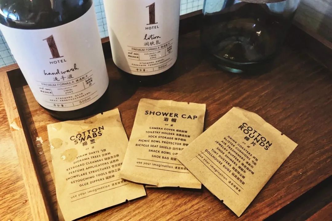 酒店君还发现一个彩蛋,仔细看用具的包装上提示了他们的多种用途,像棉签还可做飞镖!