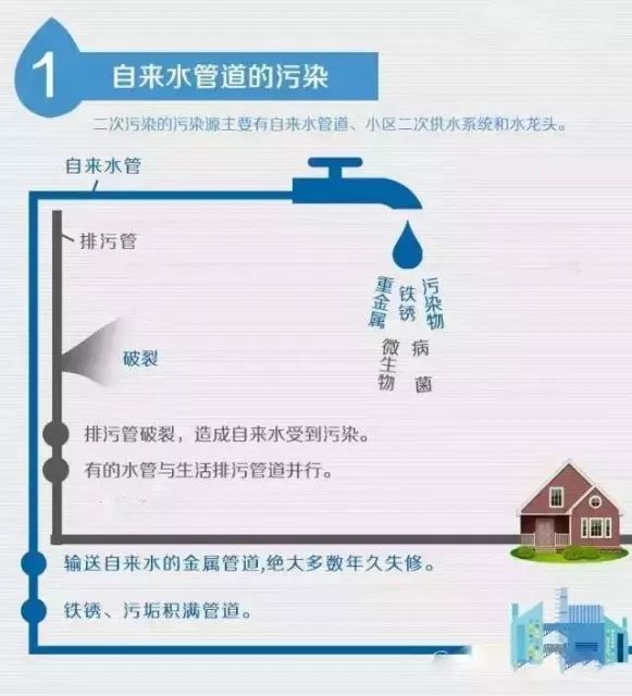 城市供水系统在常年累月的使用中,水箱及管道都积淀下不少铁锈、可溶性重金属,及红虫等。