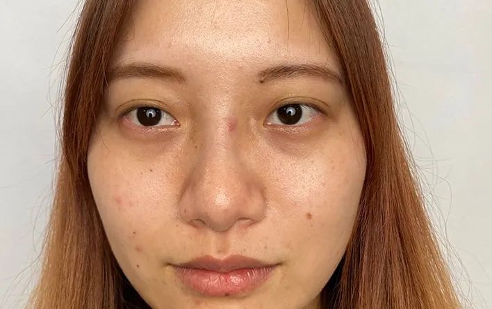 使用前因习惯性熬夜,皮肤暗黄有痘印。