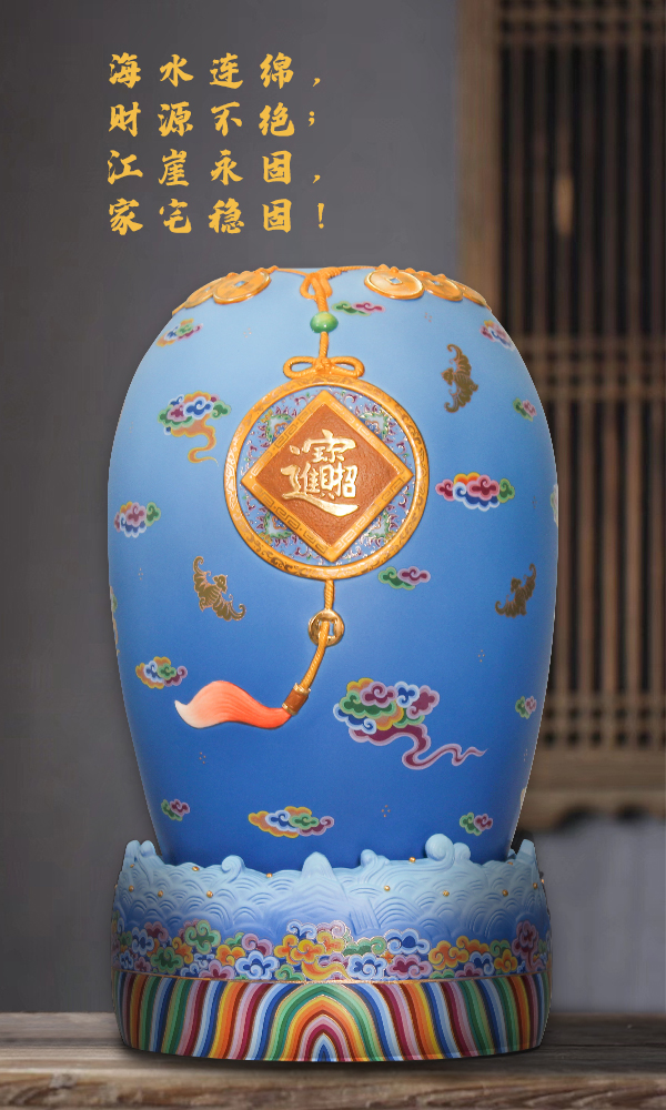 海水江崖聚宝盆有五种颜色,对应五行。因此可以根据每个人的命盘日主的五行,挑选对应颜色五行聚宝盆(我克为财):