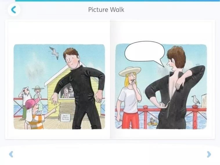 将绘本中的文字隐去,直接看图猜测情节。好的分级读物,插画质量与文字质量旗鼓相当,甚至会提供文字之外的细节信息。看图预测,可以培养孩子们对细节的观察力,同时也唤起孩子们的好奇心和想象力!