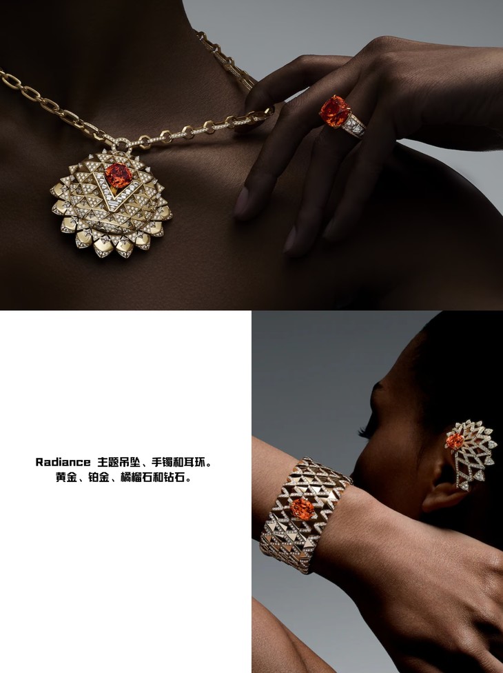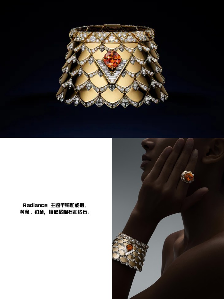 💍 Radiance手镯和戒指,黄金、铂金的奢华材质,镶嵌橘榴石和钻石,每一处细节都透露着品牌对完美的追求。戴上它,你就是那最耀眼的存在!✨