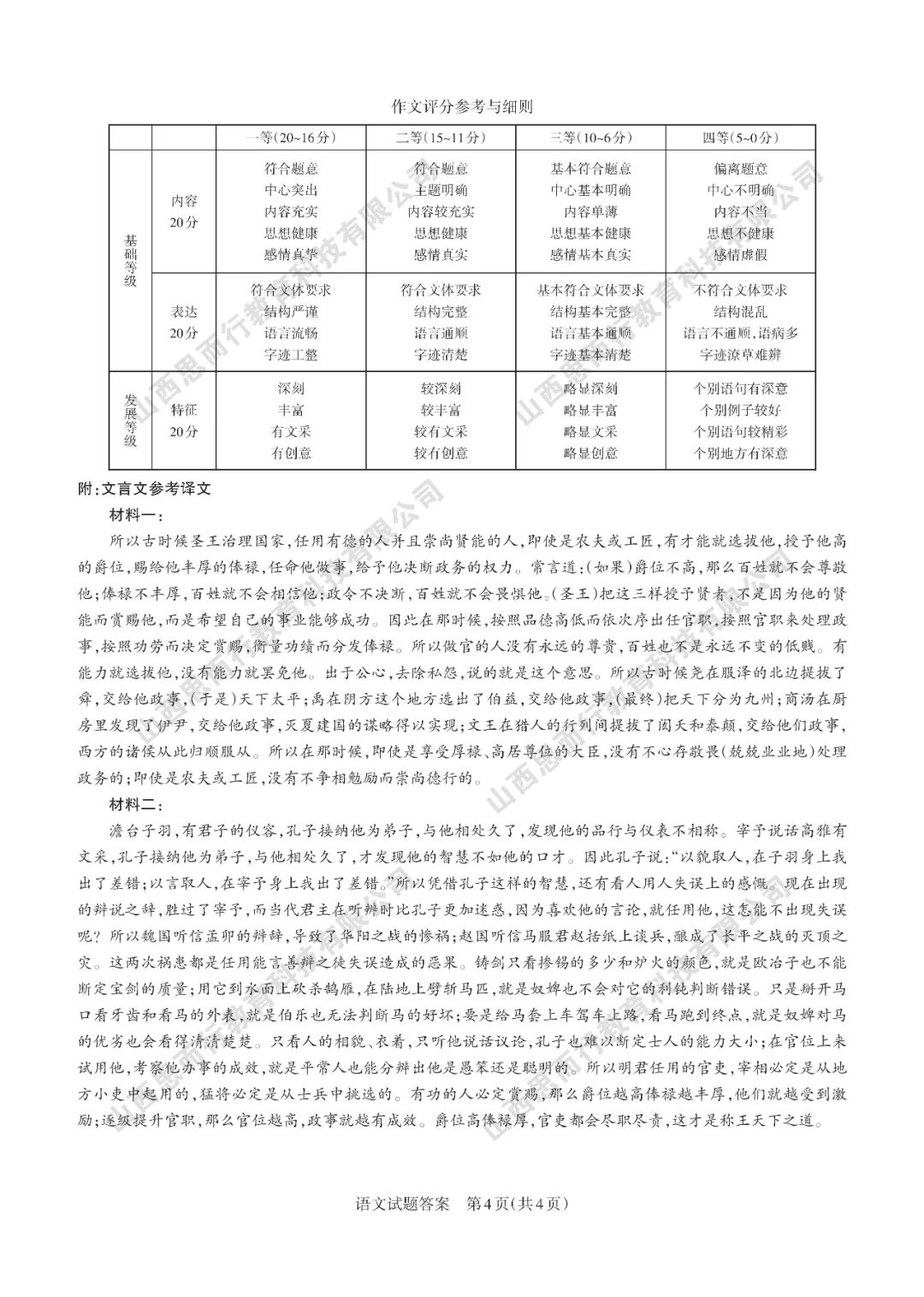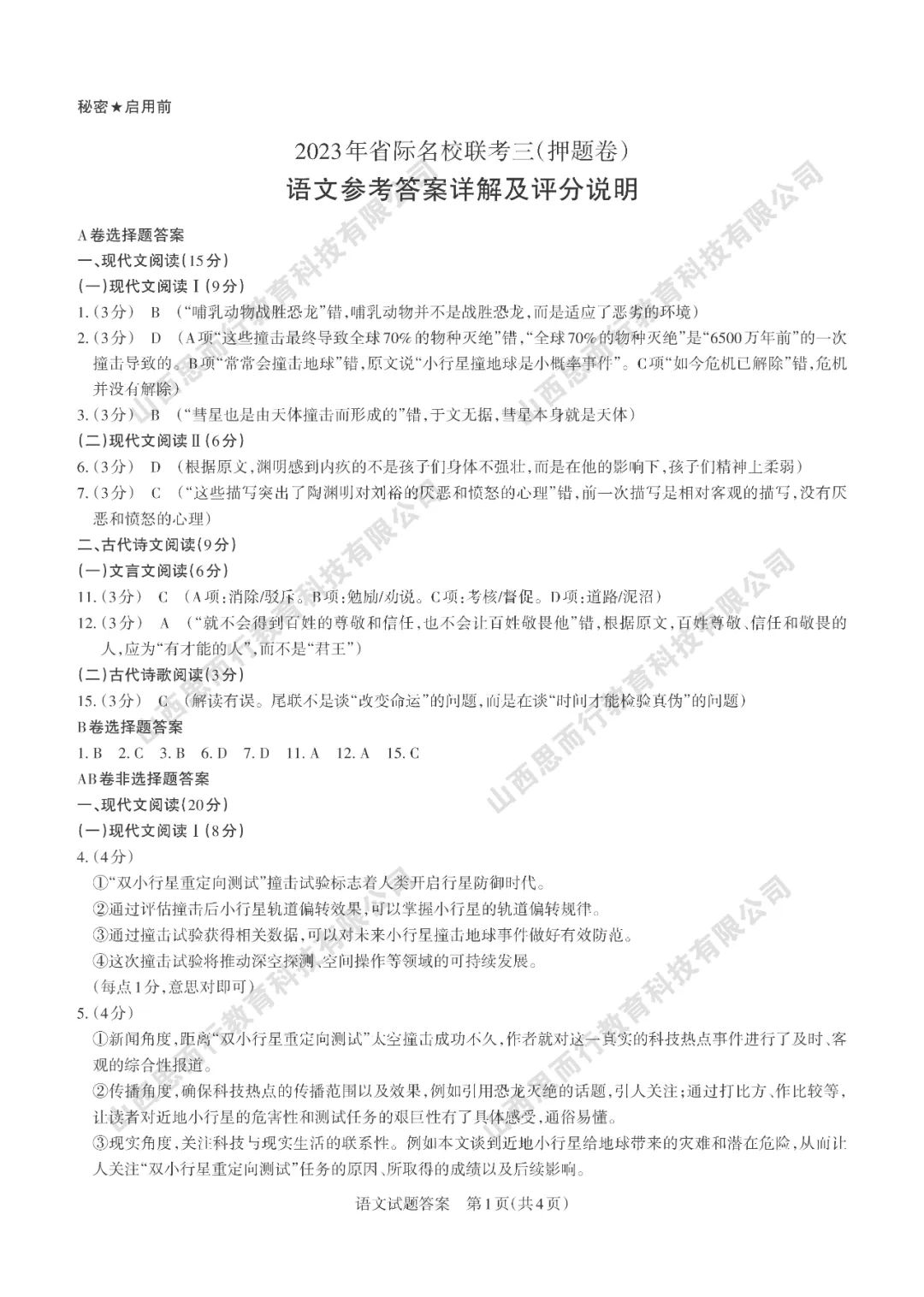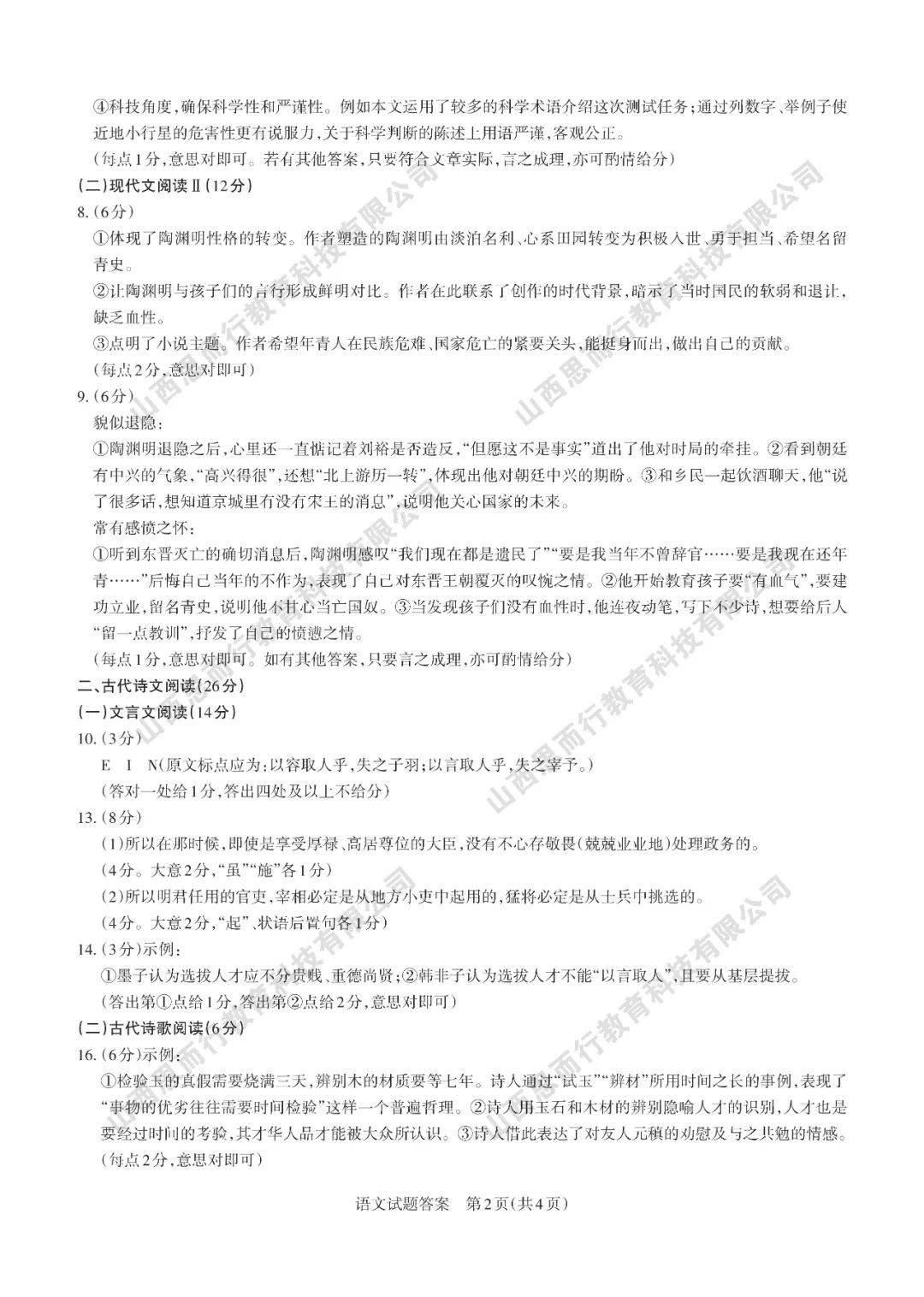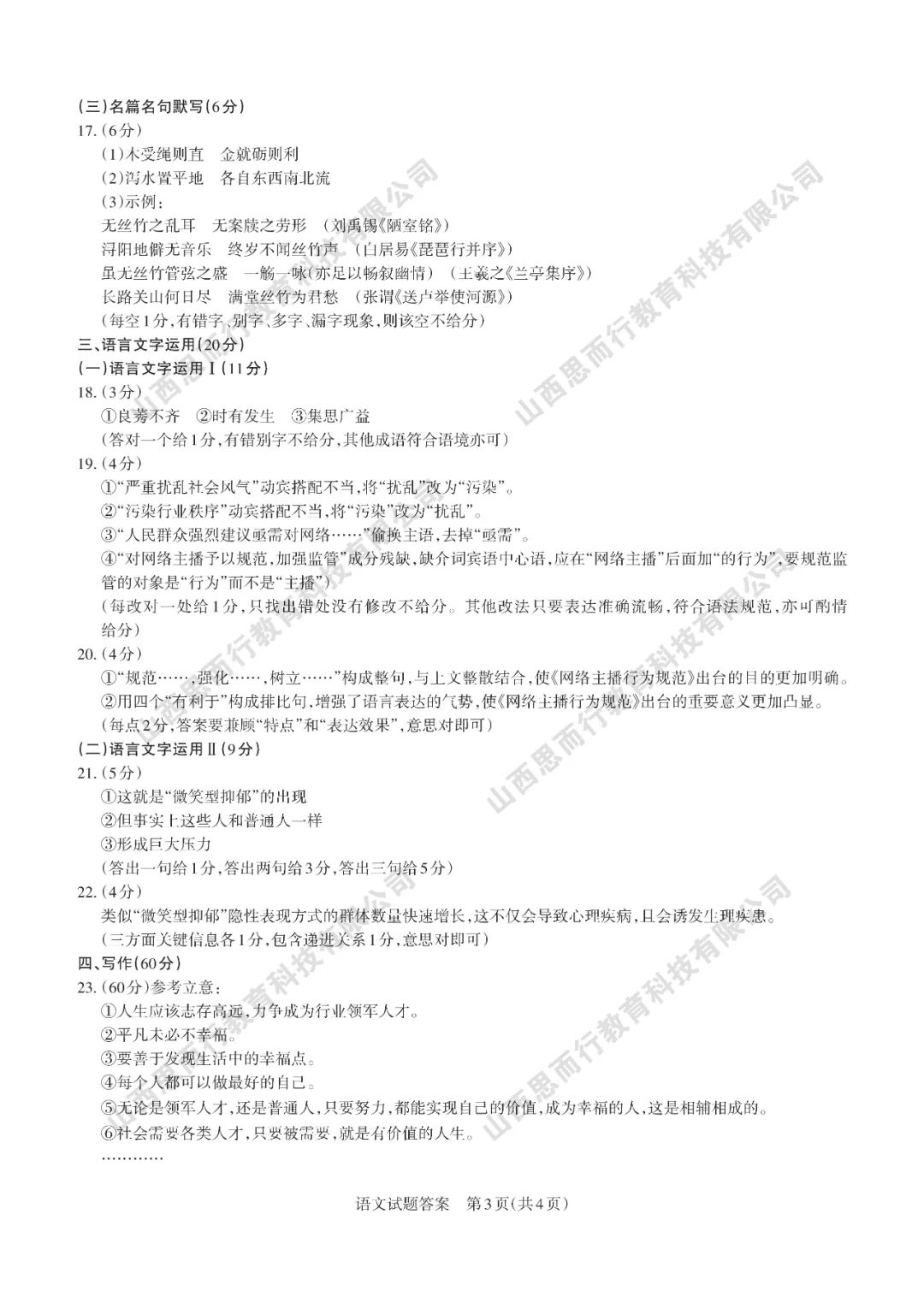 山西高考三模语文试题答案