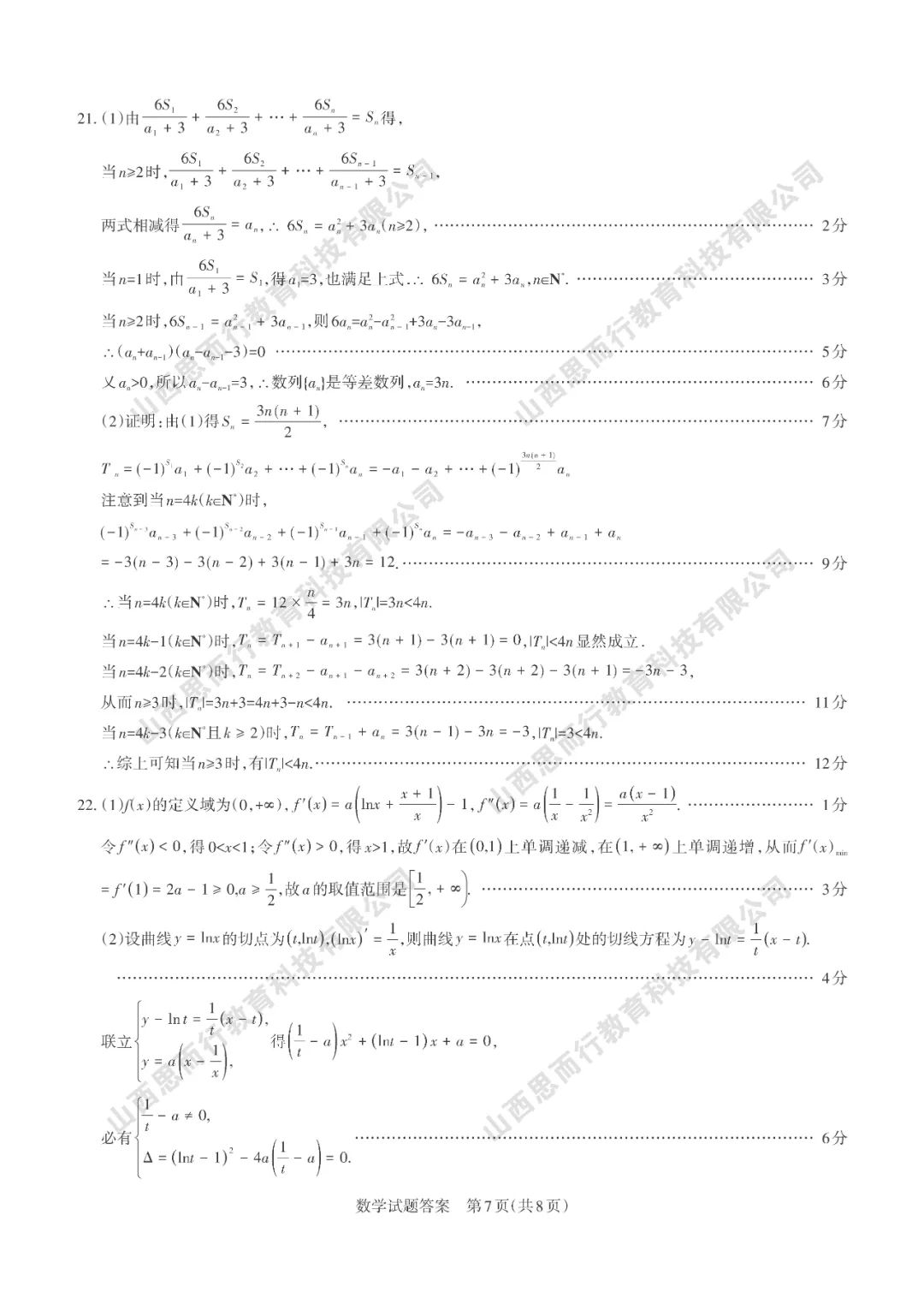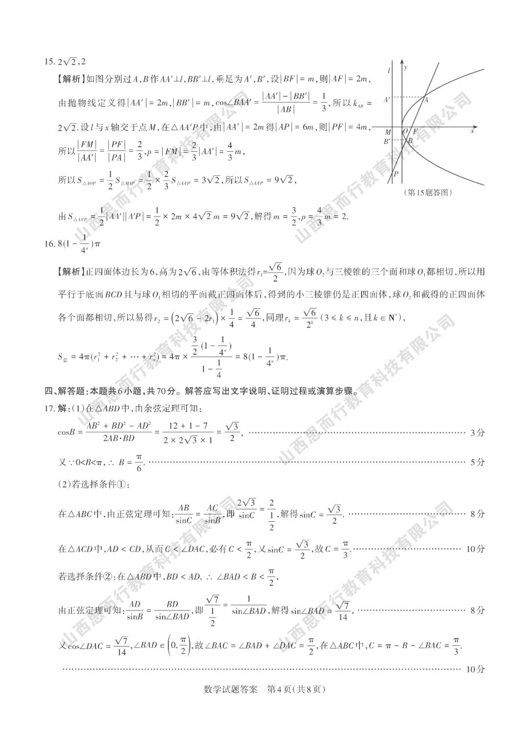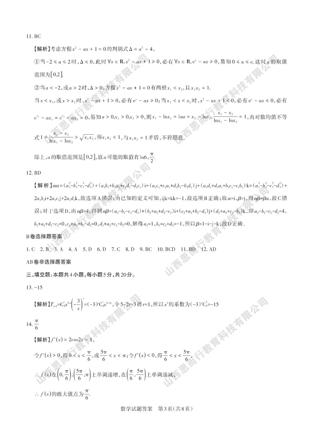 山西高考三模数学试题答案