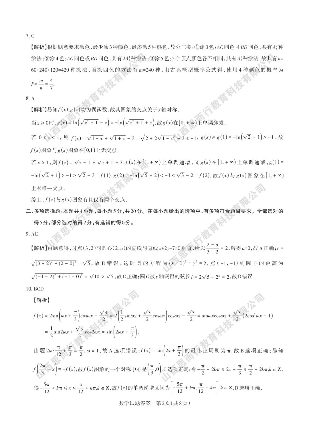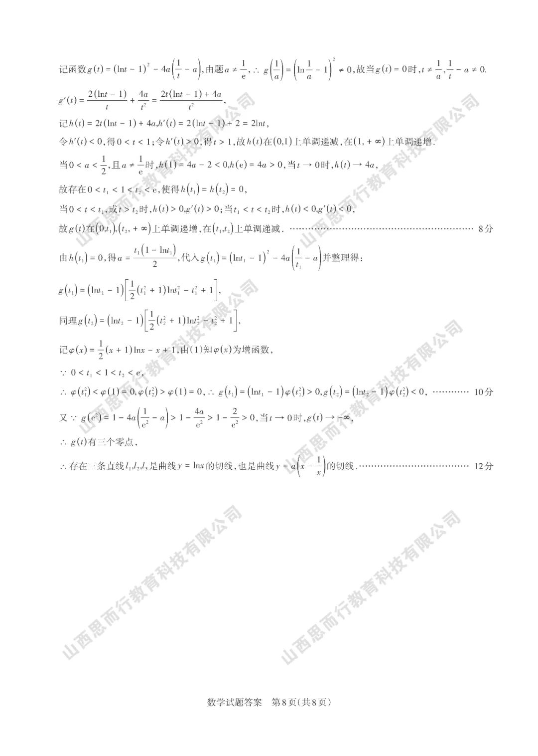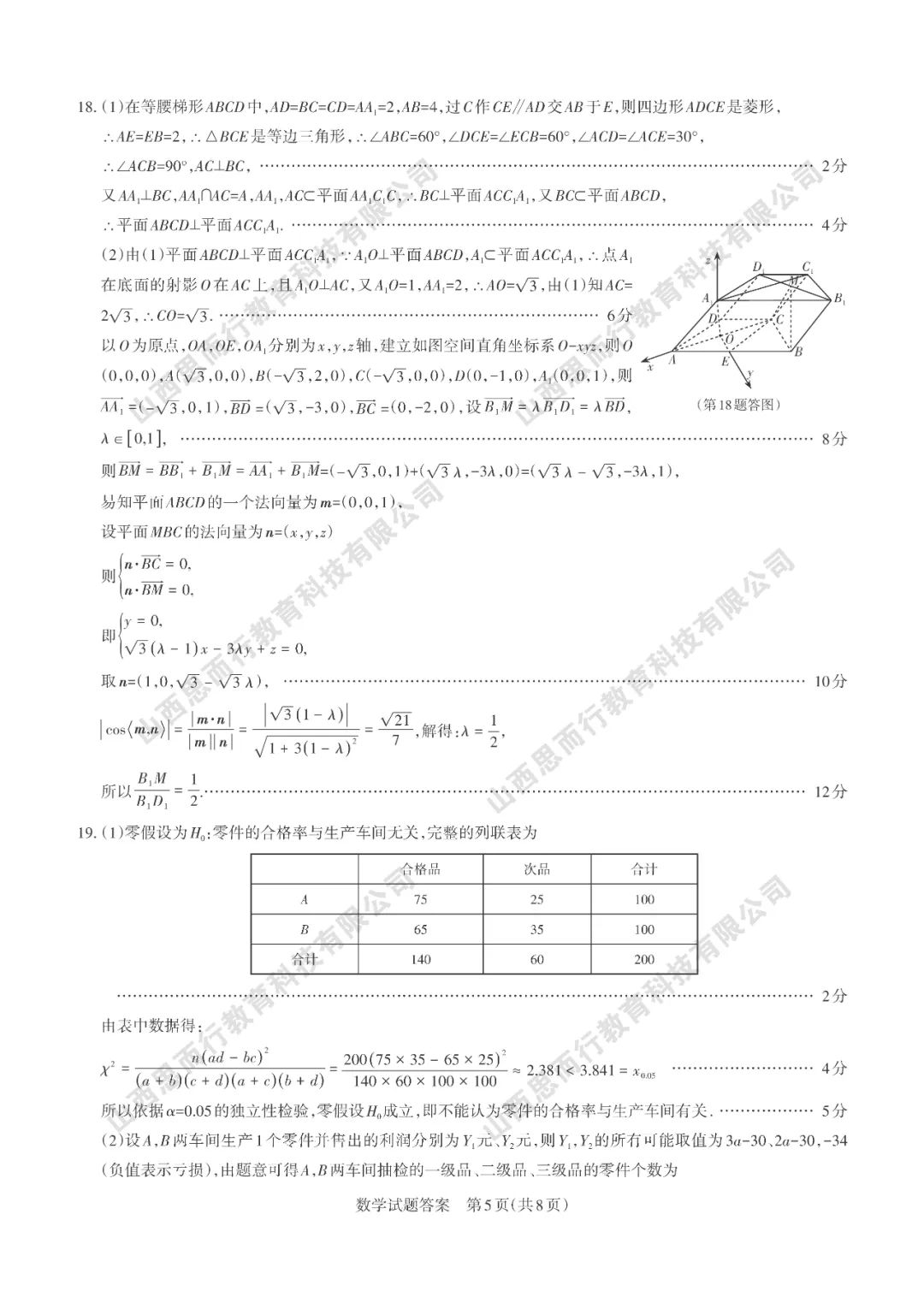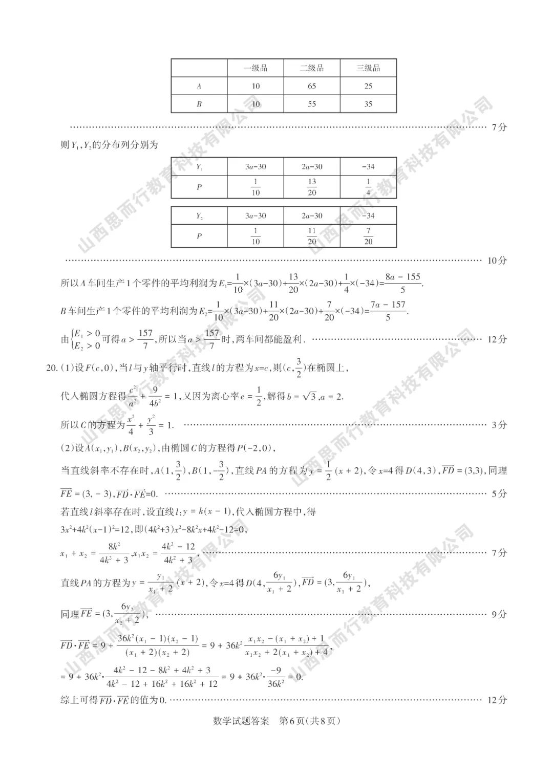 山西高考三模数学试题答案