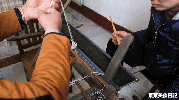 把纱线都缠绕在轴上后,就到了点杼这一步了。