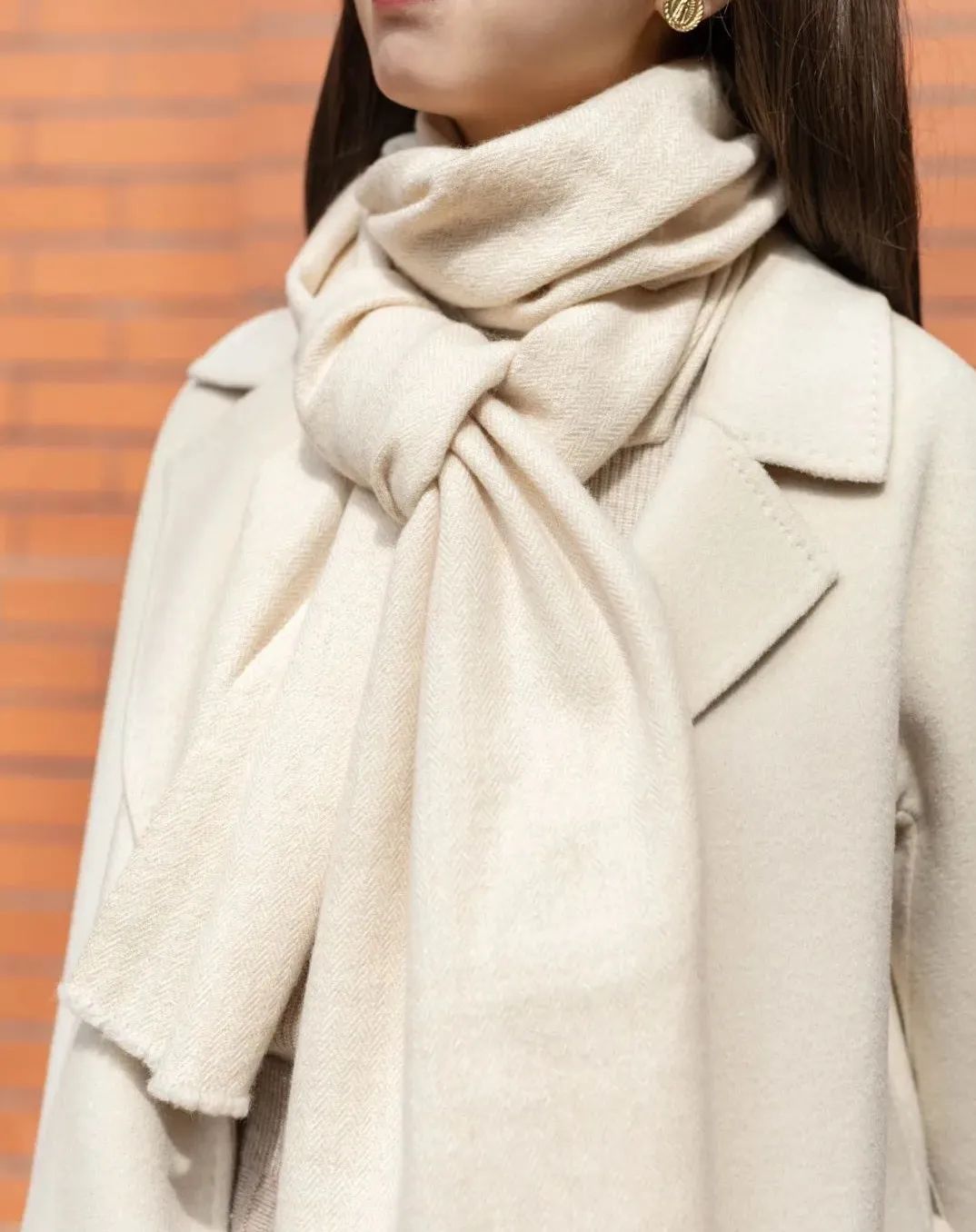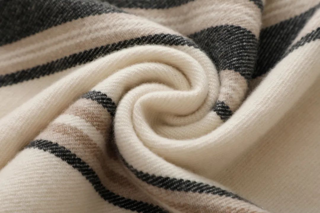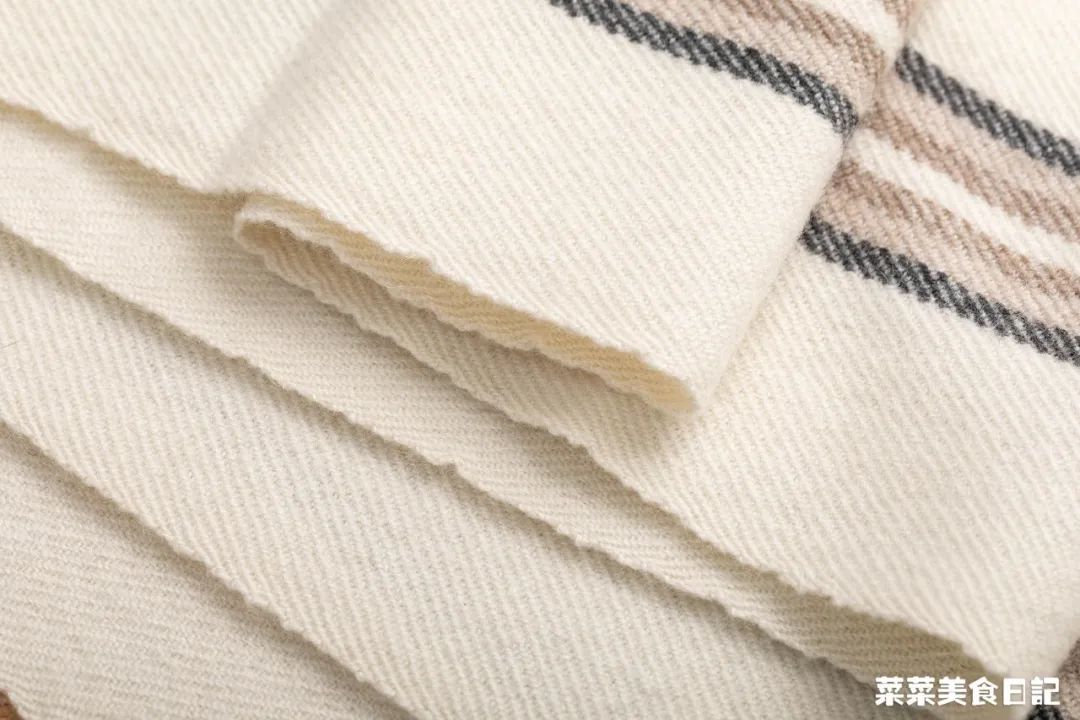 斜纹羊绒围巾的表面上,遍布着明显斜向纹路,织成的围巾,也更厚实,不易变形。