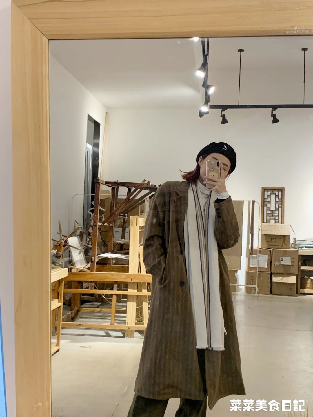 不过要注意调节一下垂下来的围巾长度,太长会显得拖沓喔~