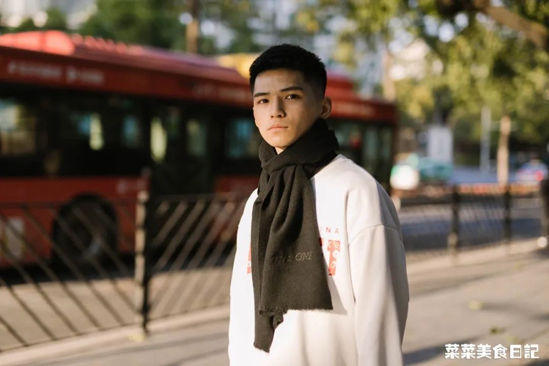 我司摄影师小哥哥,拍完照,就直接把这条样品围上带走了~(又薅公司羊毛)