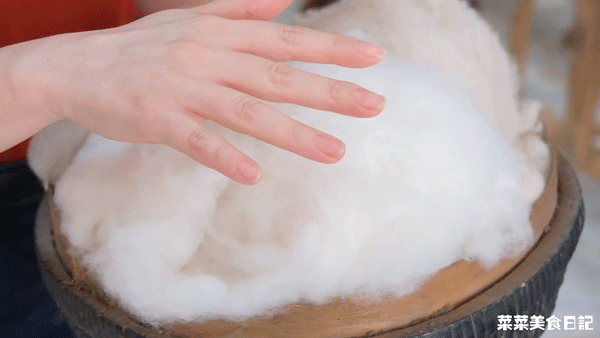 给你们看看我在老奶奶家里看到的羊绒原料:无论维弹性、长度、细度、白度、色泽...都是菜菜摸过最好的羊绒。