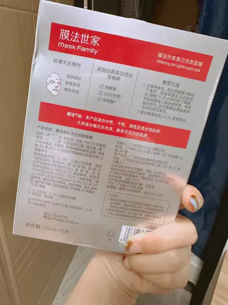 价格实惠,里边精华挺多的,透气性也是有的,用着不闷肤,敷完脸真的是很滋润嫩滑,本人肤质属于大干皮,补水效果很好,听说持美白特证,希望有美白祛斑效果