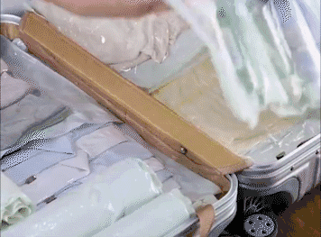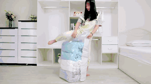 一个装满被褥、毯子的中号压缩袋,用力按压8秒后,体积就能减少一半。