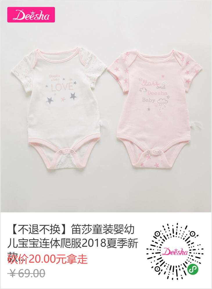 8.8-8.13【砍价20元享】80短袖三角爬服(两件装)(不退不换)