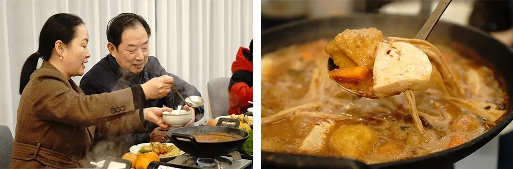 他介绍汤底的食养作用:红曲酒醪由糯米与红曲小曲发酵而成,色泽红艳,香气散中有收。红醪能入肠胃气血之海,长于消化,提高新陈代谢,温暖滋养胃肠。曲淡存中,能停留在身体中部,与火锅食材一起,温暖中央肚腹。