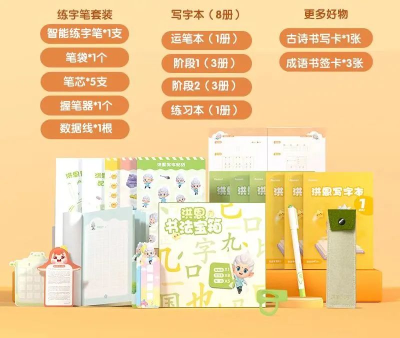 现在入手《洪恩写字》智能豪华练字套装:【1000+汉字指导课+可书写5万字的黑科技洪恩智能笔+配套写字随材】只需498元抱走!