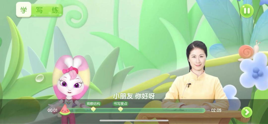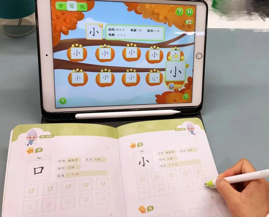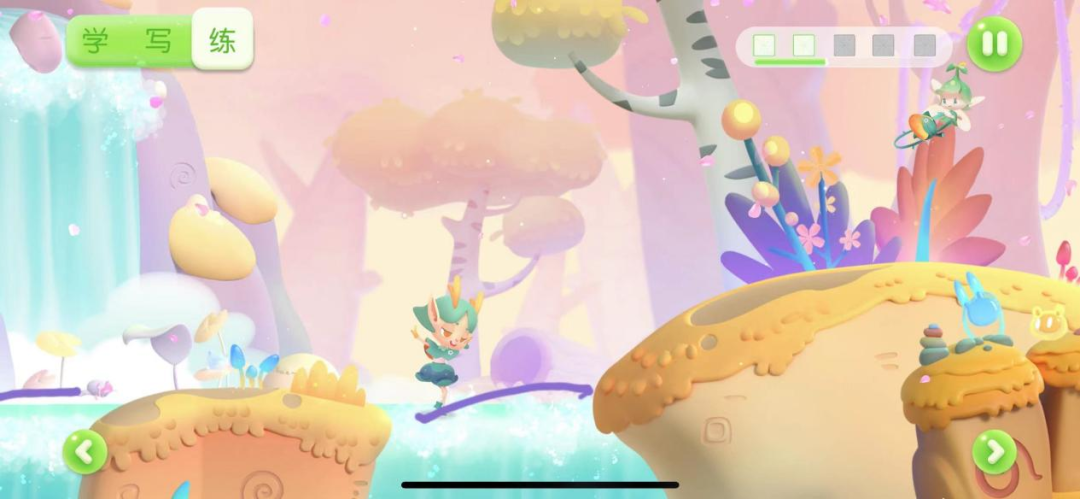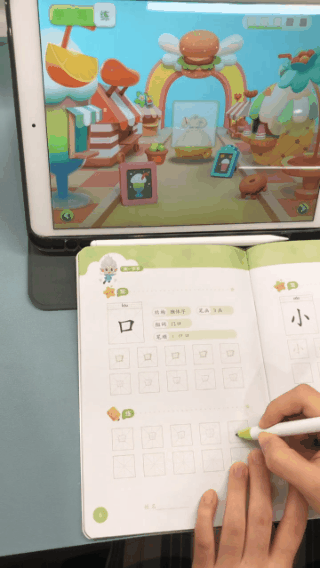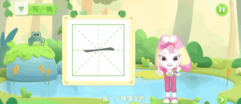 最后一步是“练”环节。这是个趣味互动环节,遵循了孩子们“玩中学”的认知规律,打造了一个神奇的书写世界。
