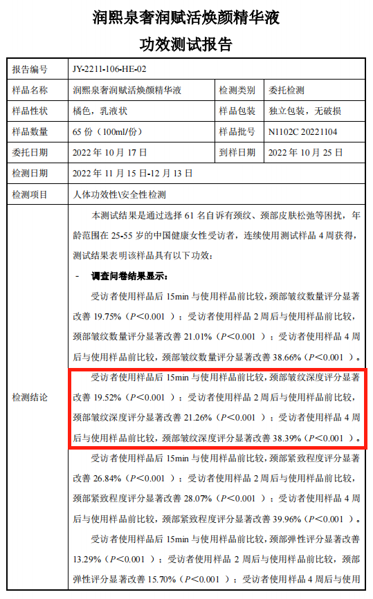 不过效果最好的还要属颈纹,官方非常自信宣传:使用 15min 就能改善 19.5%。
