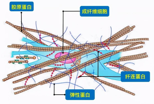 它是由「重组 III 型胶原蛋白 + 弹性蛋白 + 纤连蛋白」按照合适的比例组成。