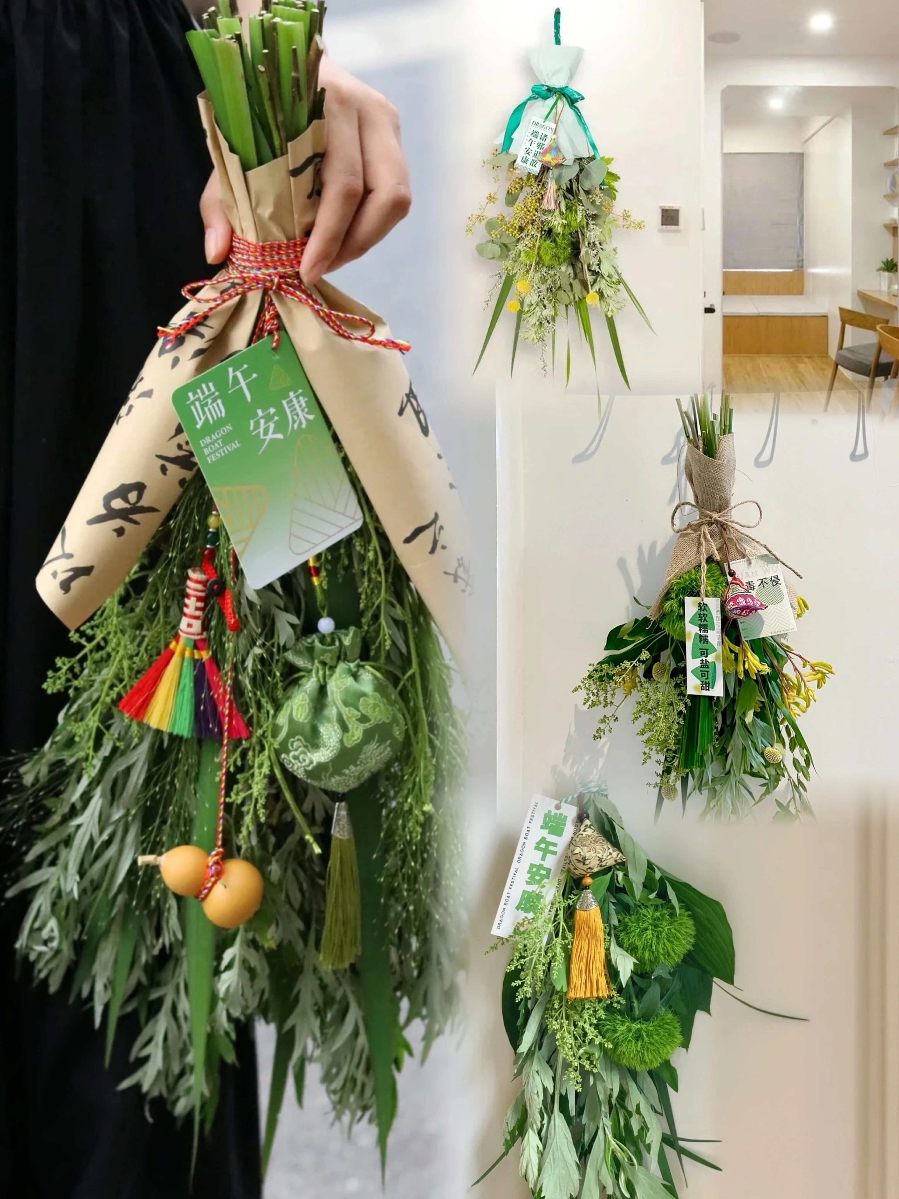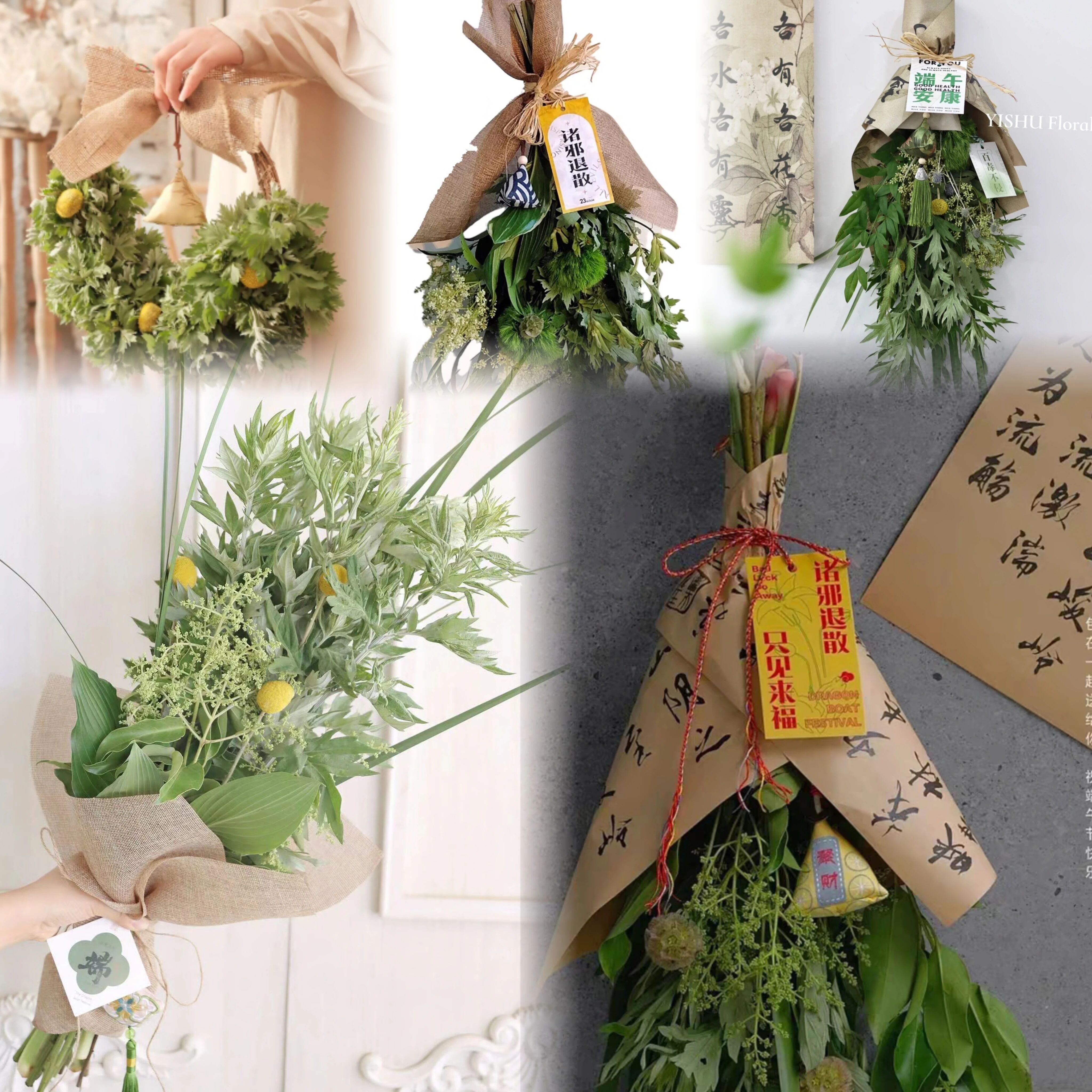 花式生活家庭氛围组の端午花束 🌿基础款/花束款/花环款,手工打造~大气美观!可挂一个月!3~4种端午花材!人手一份,仪式感拉满!仲夏端午,每一种花材都满满安康和祝福!家人闲坐,灯火可亲