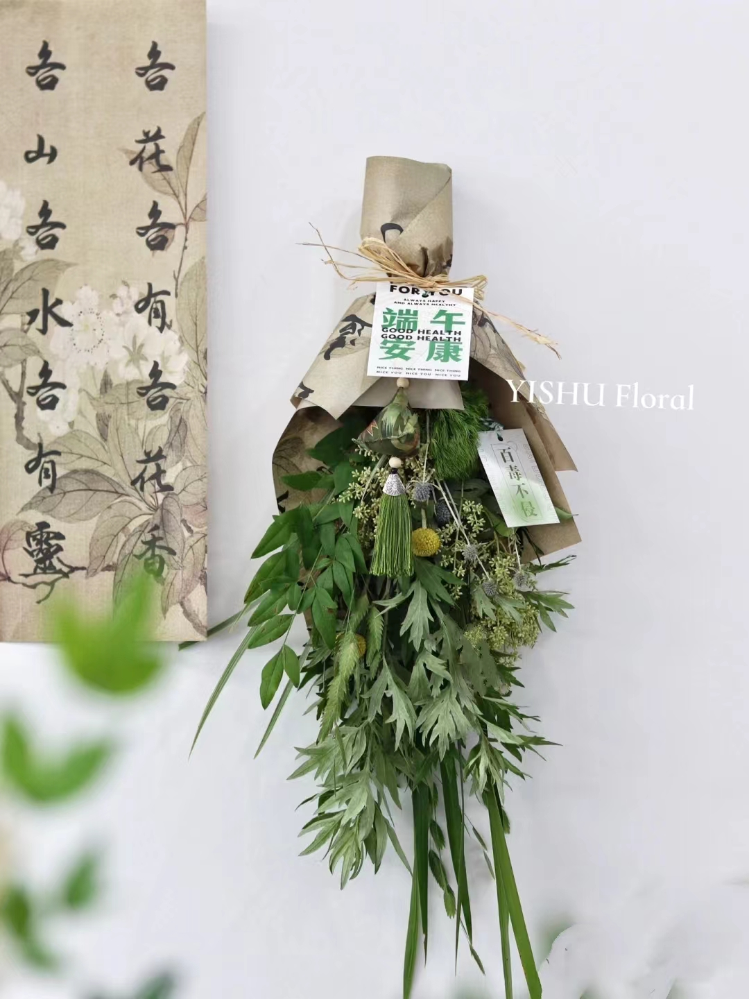花材3~4种,必含经典艾草菖蒲/辅助花材随机搭配(赠卡片/赠香囊)