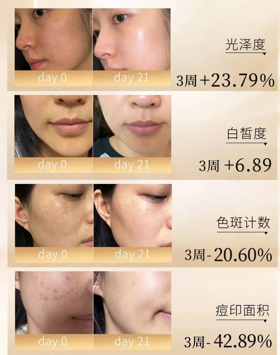 肌肤亮、匀、净、透、白、紧