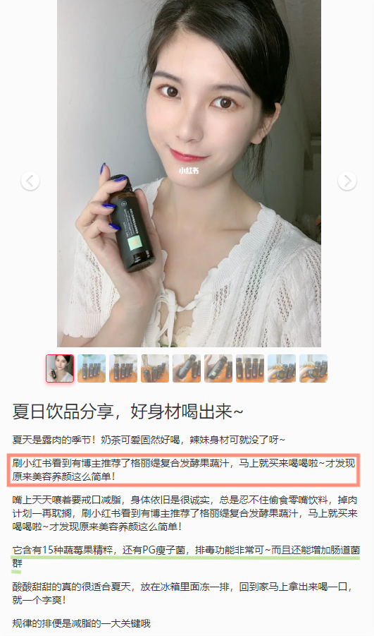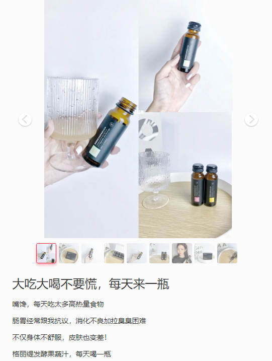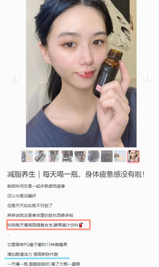 同时综合发酵果蔬汁中含有转移提供肠道内PG均生长所需的营养物质,对于想瘦的人来说,每天在饭前食用一瓶且保持健康的作息加适当的运动,可有效助力身体维持纤细身材,由内而外轻盈体态。