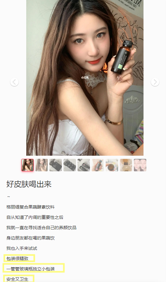 分解垃圾焕新肌肤:和朋友相同时间开始服用,但作用时间长短不一样,酵素可以把体内以及肌肤内部的垃圾分解排泄出去,但酵素本身就是一种需要长时间坚持,逐一改善身体以及肌肤的天然果蔬精华,同时不同的肌肤状态也会影响到酵素的反应时间。