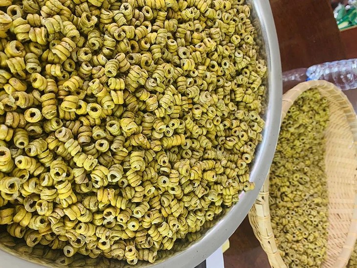 绕条 :将炒制的石斛茎文火烘焙,软化之后一边搓捻一边缠绕在铁丝上,绕成弹簧状。