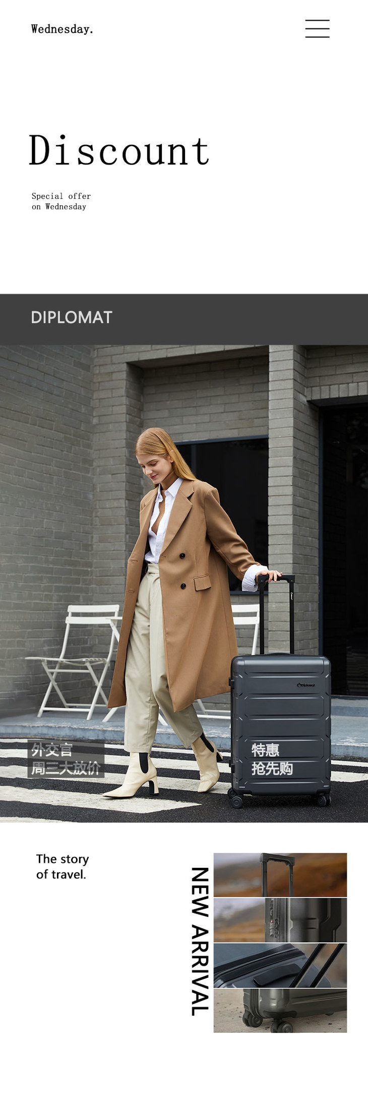 我们联合Diplomat外交官精选三款最合适的行李箱推荐给大家,20英寸是随身登机箱,24英寸是托运箱。