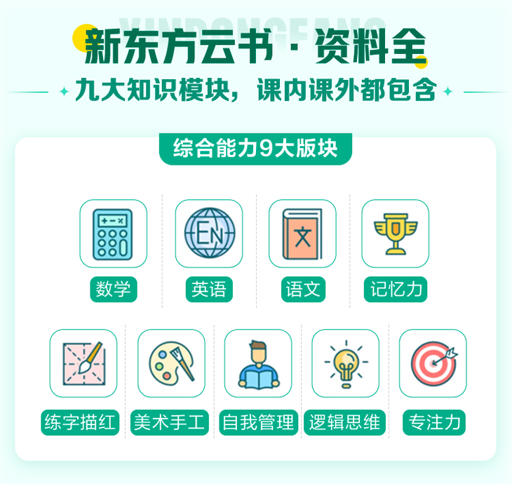 网站中的学习资料是新东方多年培训资料精选改编而成,5000万参培学员验证有效,21年教学沉淀、方法总结、优中选优。内容由浅入深,让孩子能学扎实,例如一年级语文从入门学习-基础知识-阅读理解-表达与习作,层层递进。