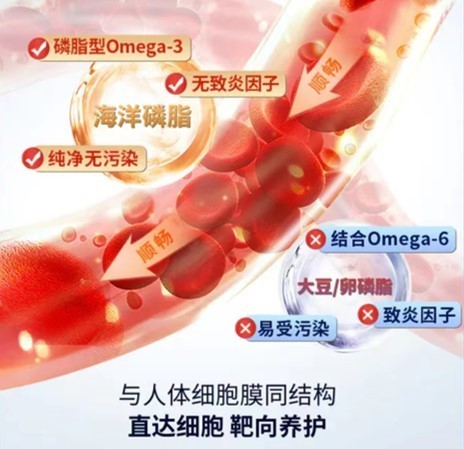 56%的海洋磷脂,高含量Omega-3(EPA+DHA)+磷脂+胆碱+虾青素,小颗粒好吞服不返腥味,好品质看得见!