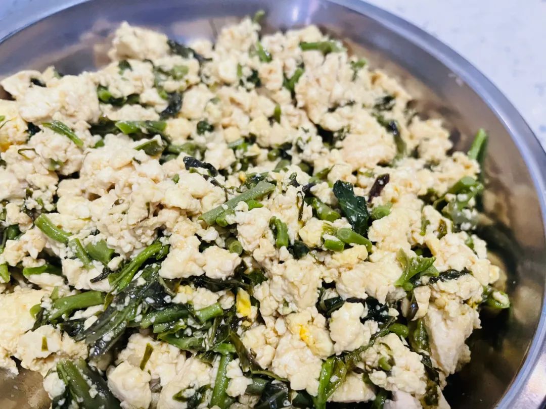豆腐、香椿、姜黄粉、有机酱油、盐