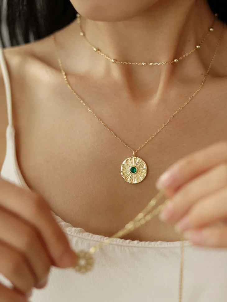 无论是极简主义还是极繁主义者,都能展现不同的自信姿态。 √ 长短碰撞:稍短的锁骨链用来平衡视觉,较长的项链吊坠拉长脖颈线条。