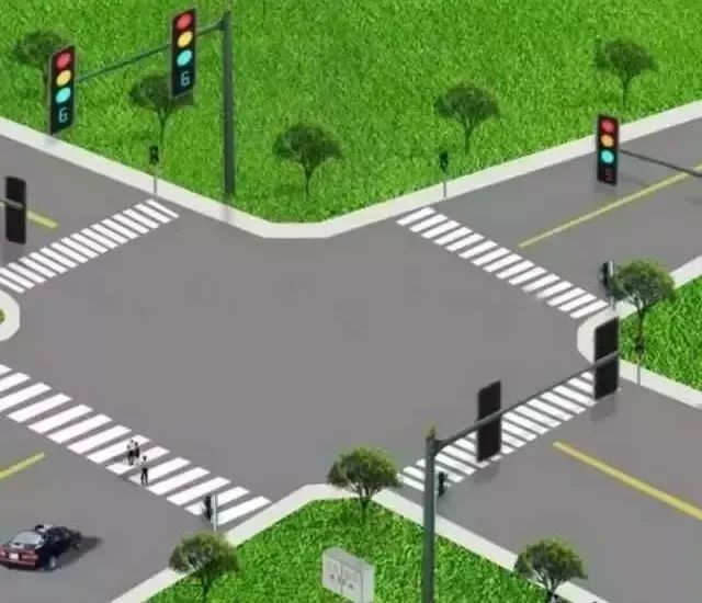 大多数路口每个方向都设有信号灯,正前方看不到时,可看其他灯组,比如看路口侧面位置垂直方向的信号灯、人行横道灯,来辅助判断当前行驶方向的信号灯状况。