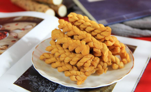 用这样的山药粉再加上优质小麦粉精心配比,运用数十道工艺、揉搓对折再对折,最后低温真空油炸。