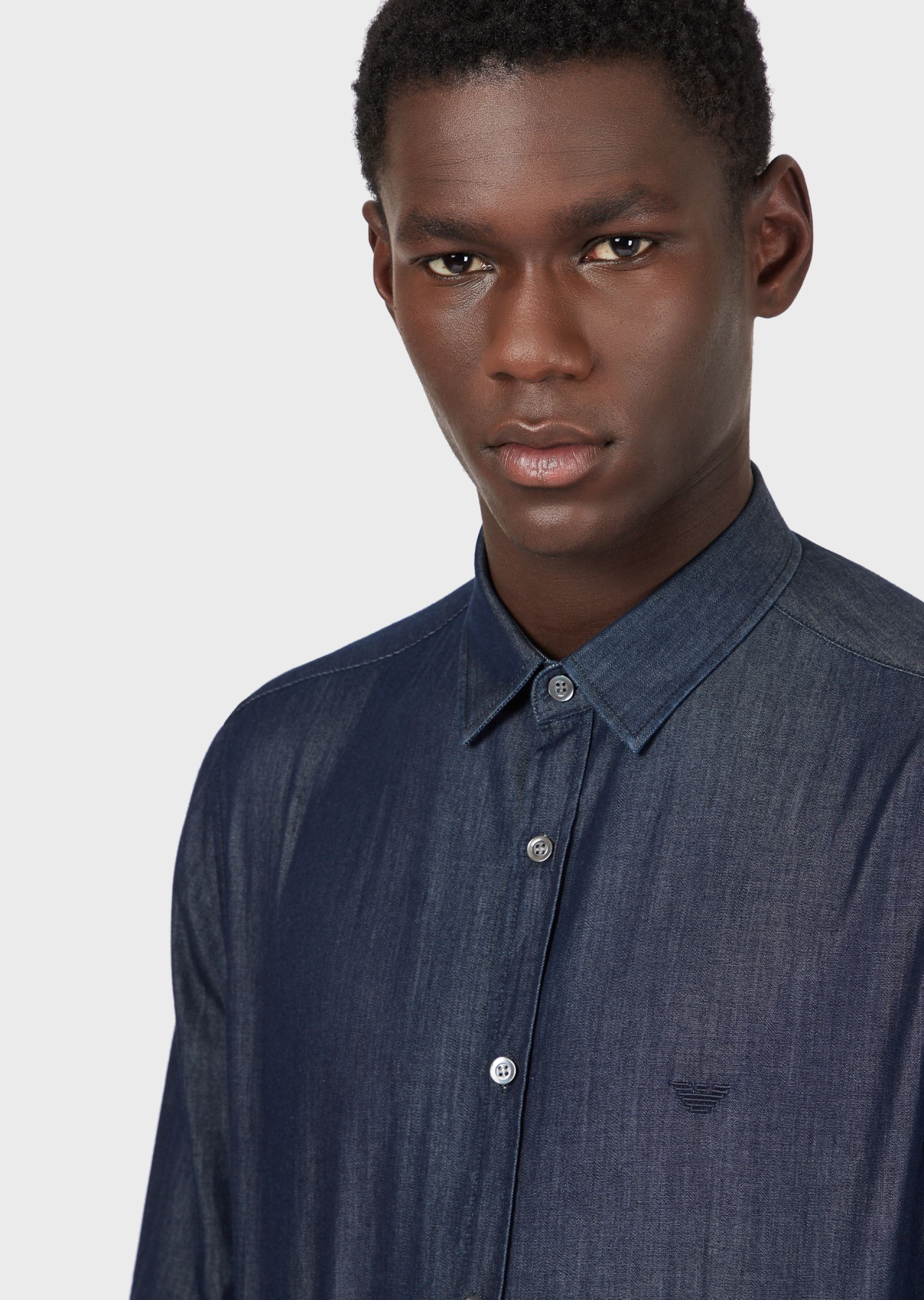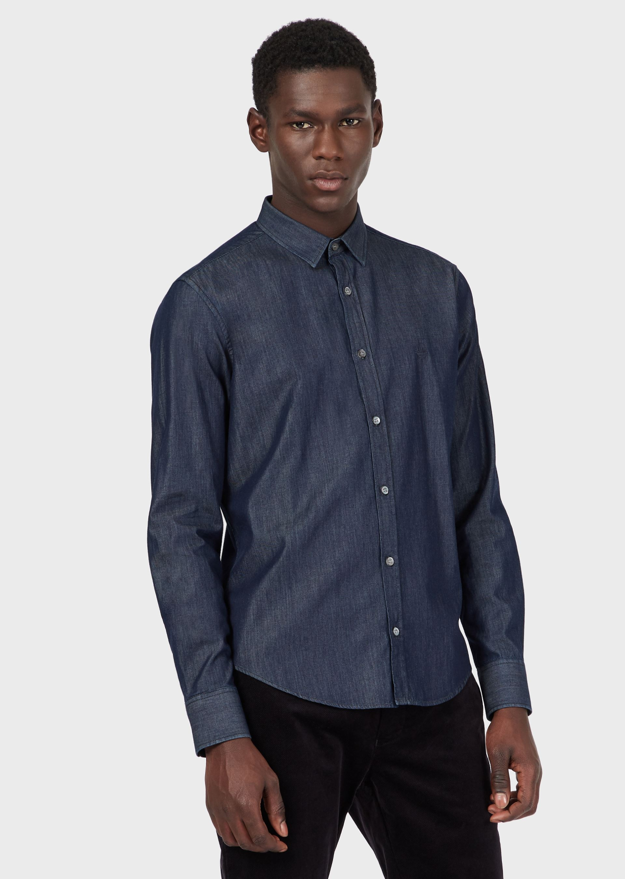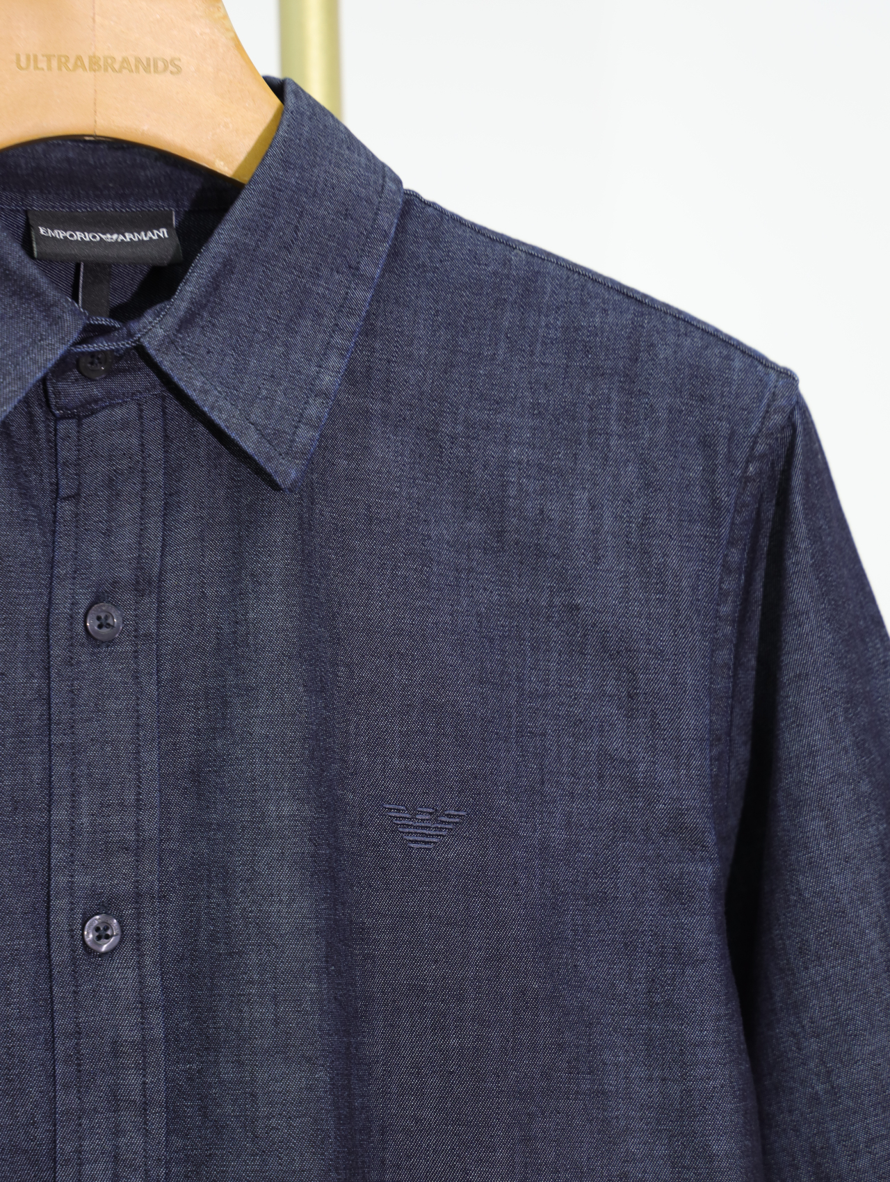 小飞鹰 标志性刺绣LOGO 深蓝原色丹宁牛仔 长袖衬衫