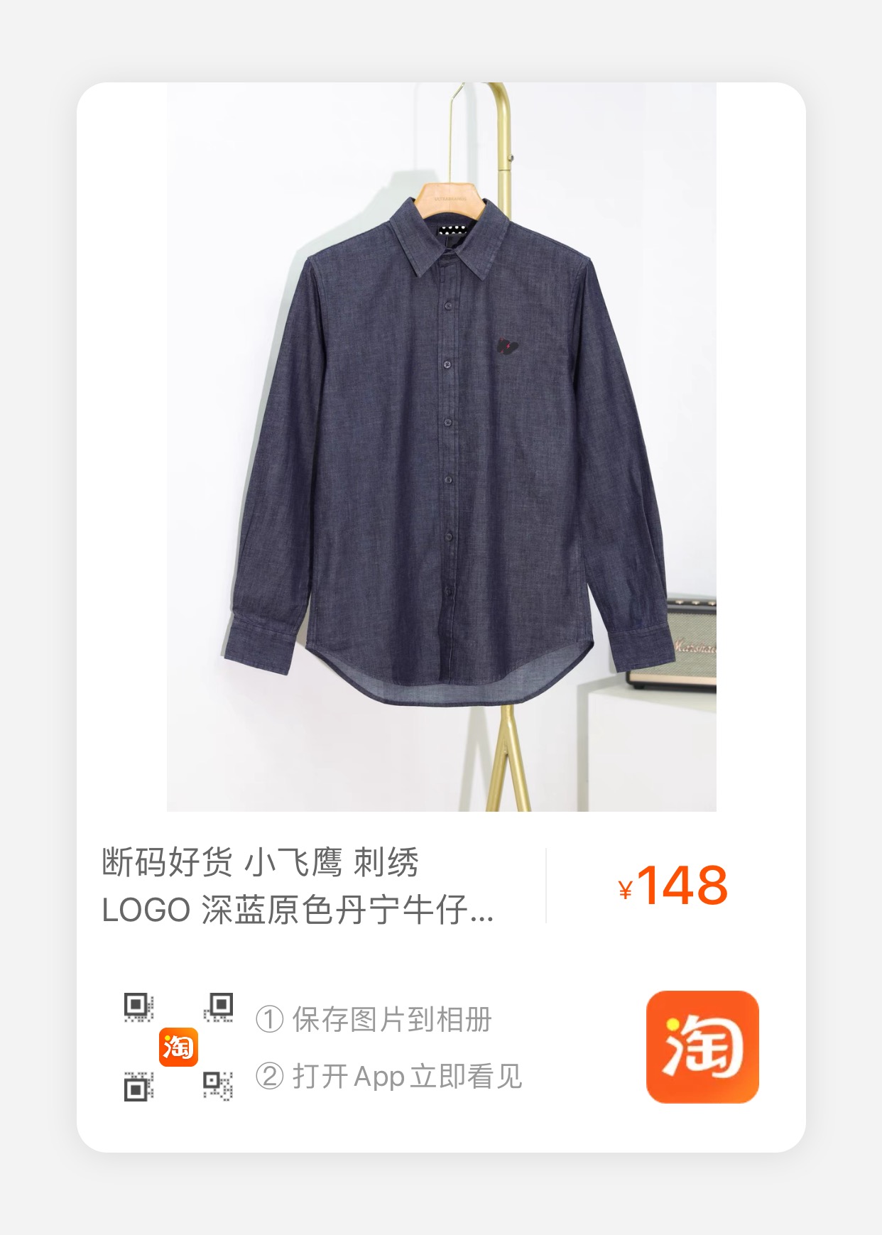原厰订单,几十件高品质牛仔衬衫,全身净色版,仅胸口刺绣小LOGO点缀
