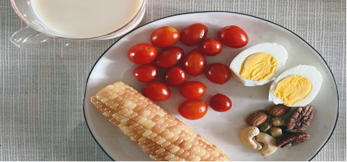 平稳组合(玉米+鸡蛋+坚果):血糖波动小,饱腹感持久。
