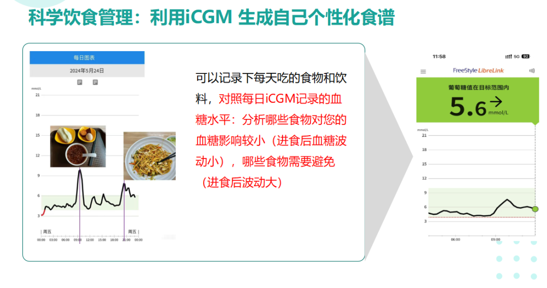 记录每日饮食与iCGM数据,分析哪些食物对血糖影响小,逐步优化饮食结构。