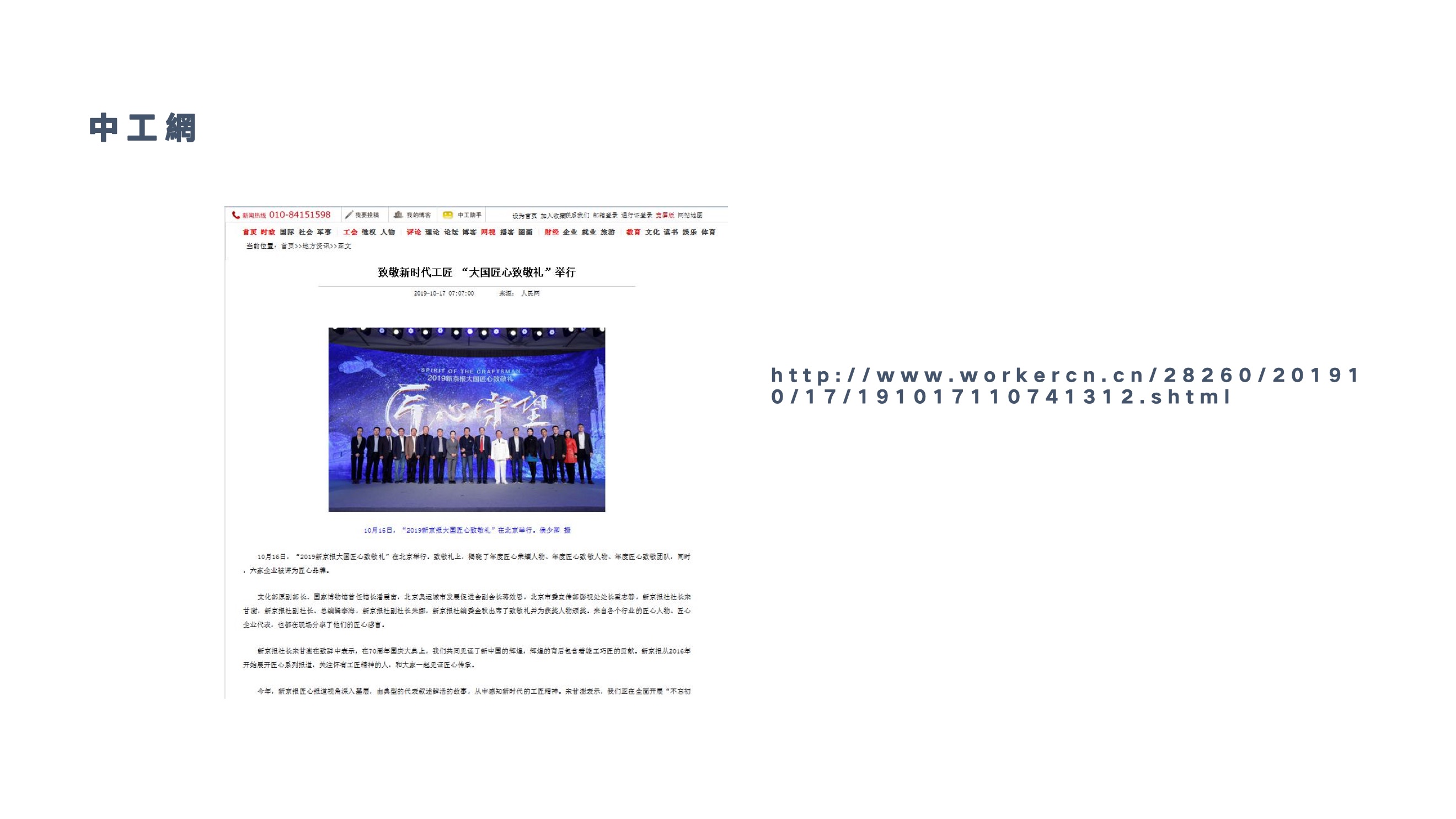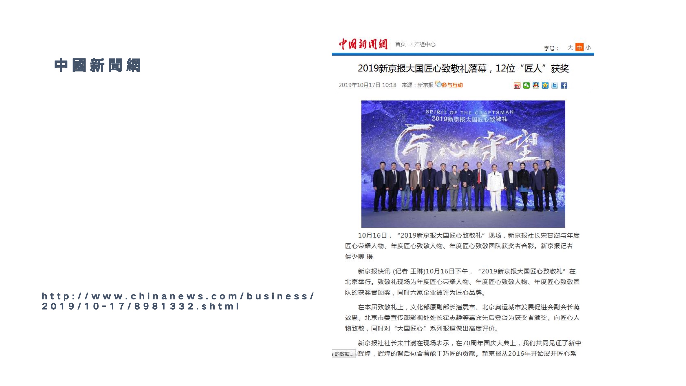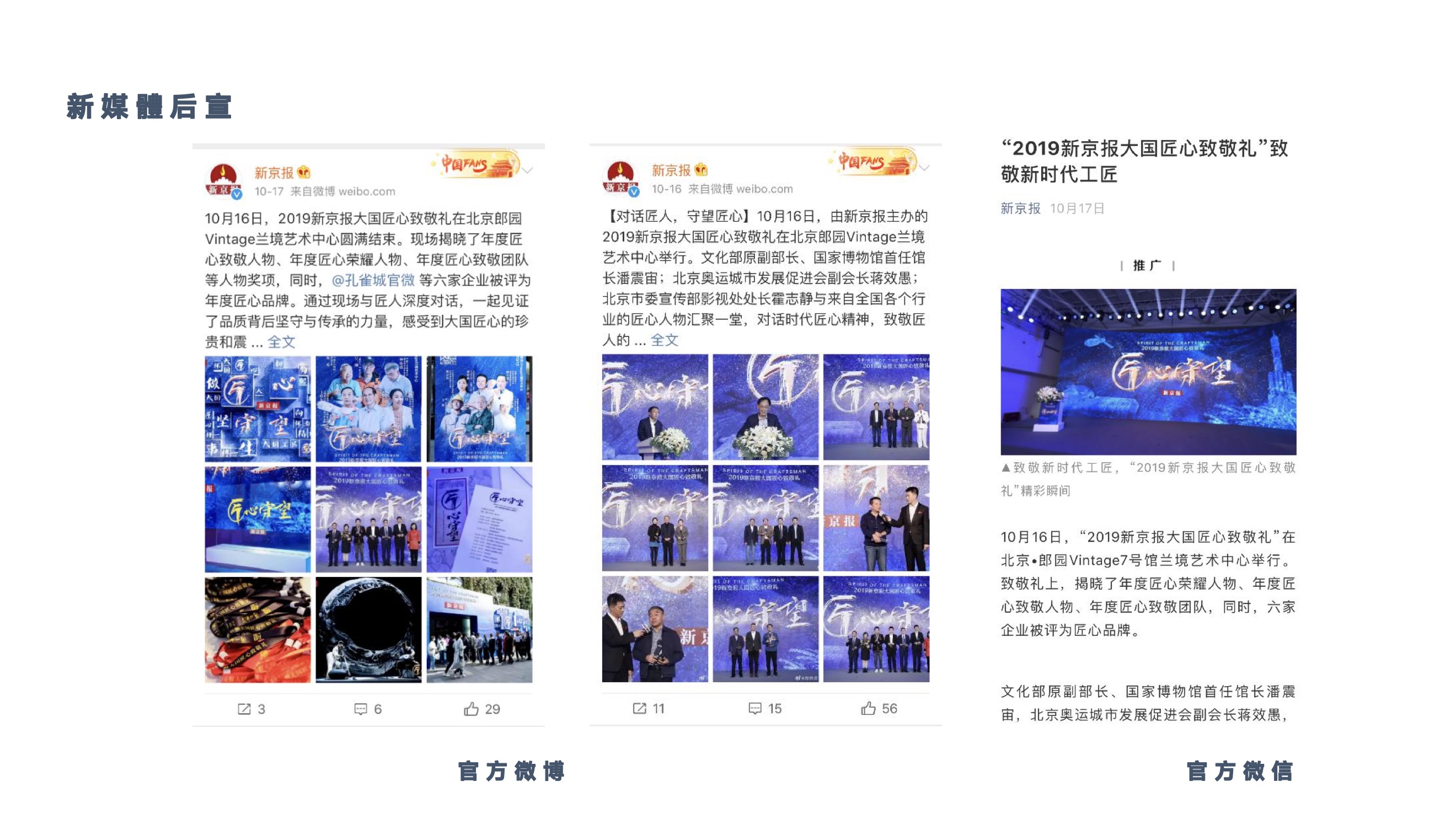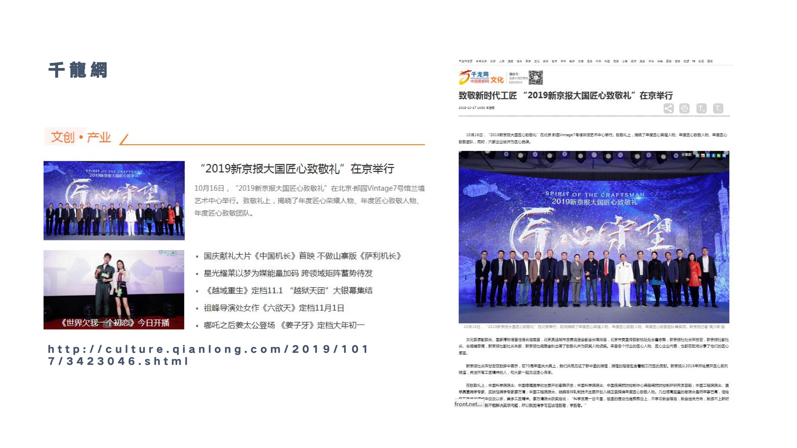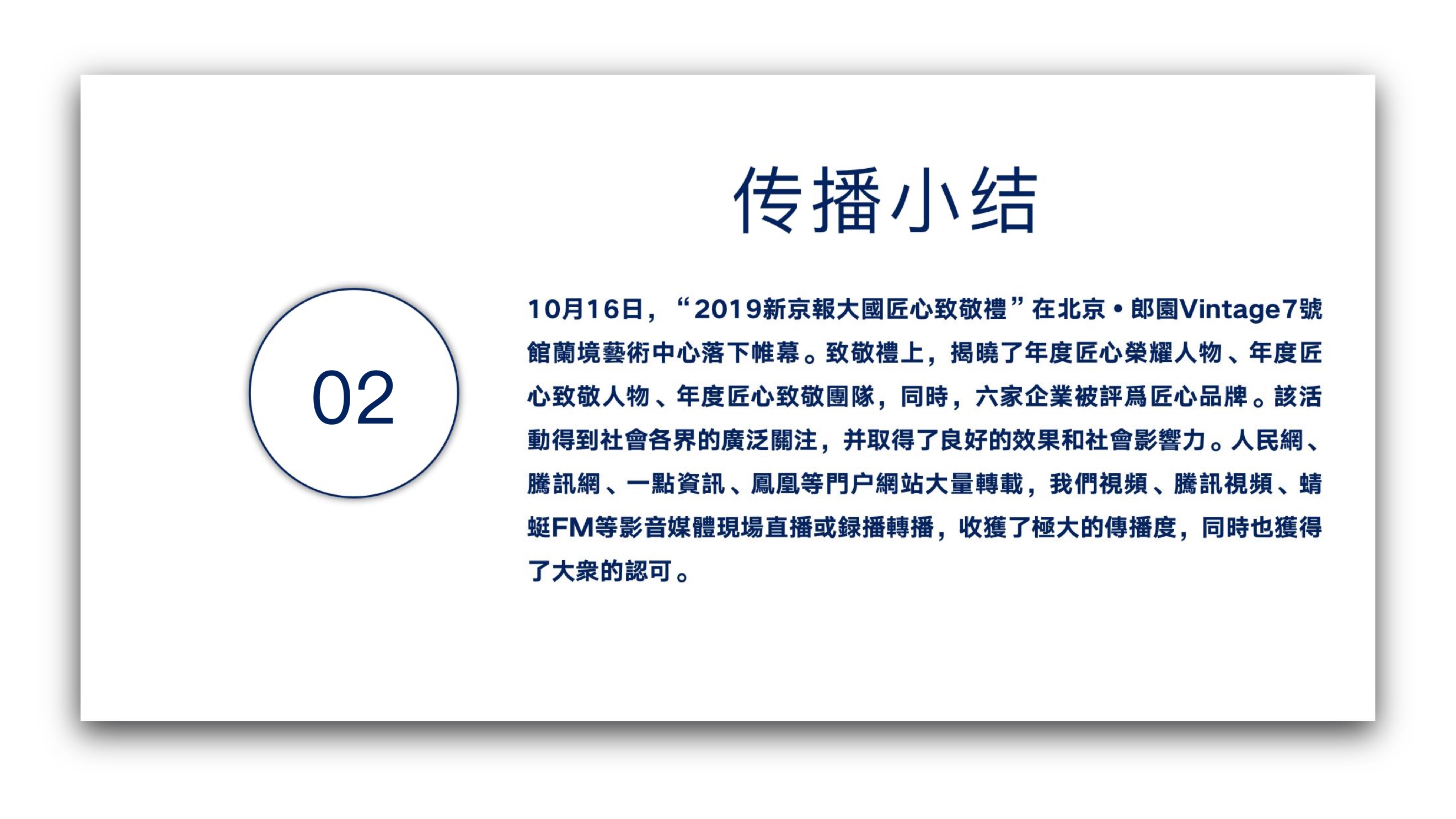 《大国匠心》系列报道及颁奖活动,聚焦大国重器制造者、核心技艺传承者、匠心品牌造就者,记录品质坚守背后蕴藏的智慧和思考,讲述“中国智造”、“中国创造”故事。活动现场颁发匠心致敬人物、匠心致敬品牌等年度致敬奖项,通过深层的讲述与弘扬让工匠精神再次引发社会共鸣,在社会各界引起剧烈反响。
