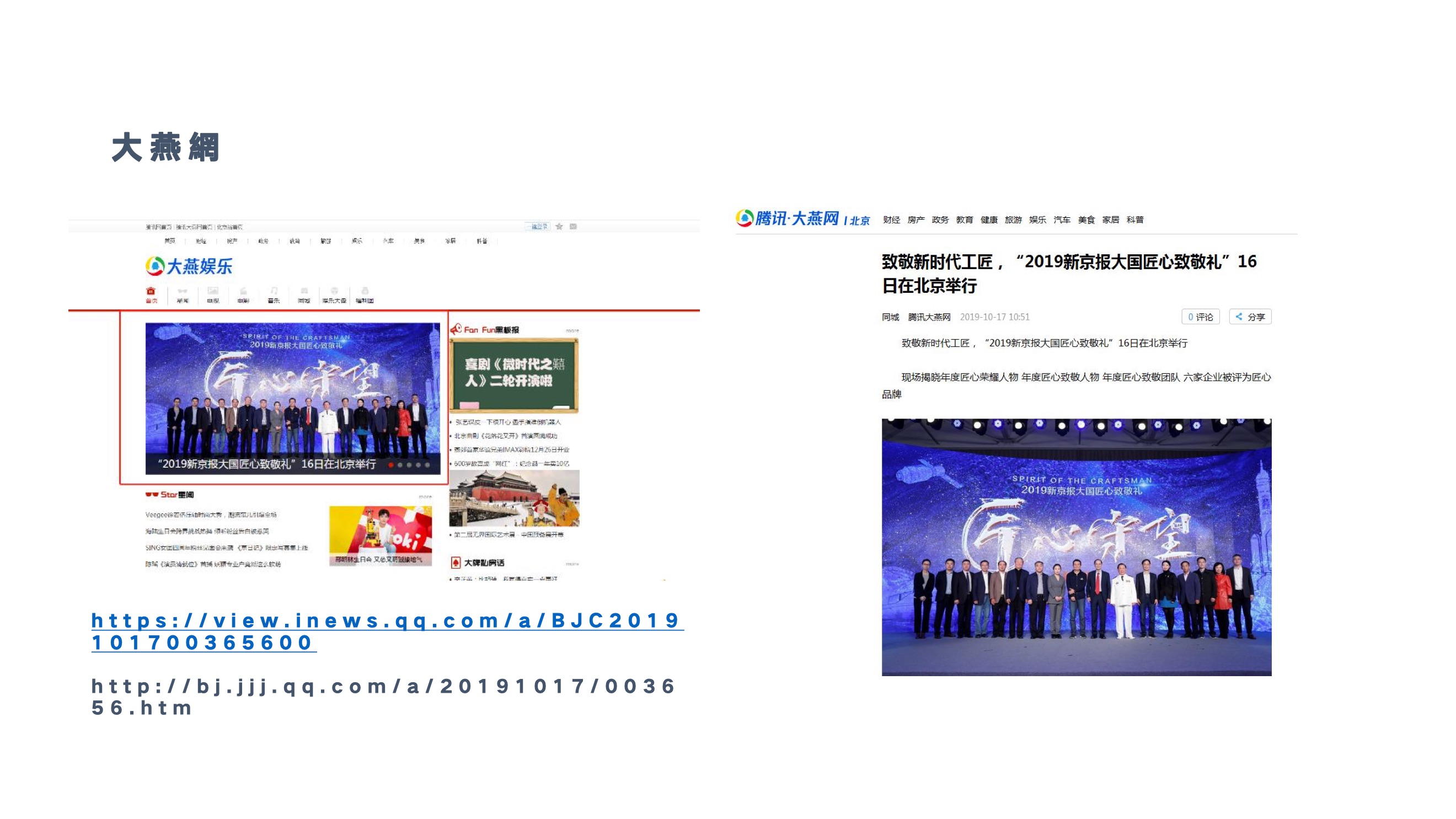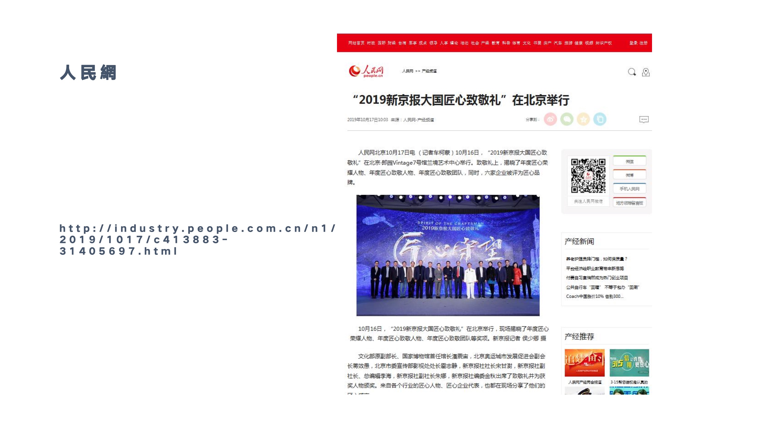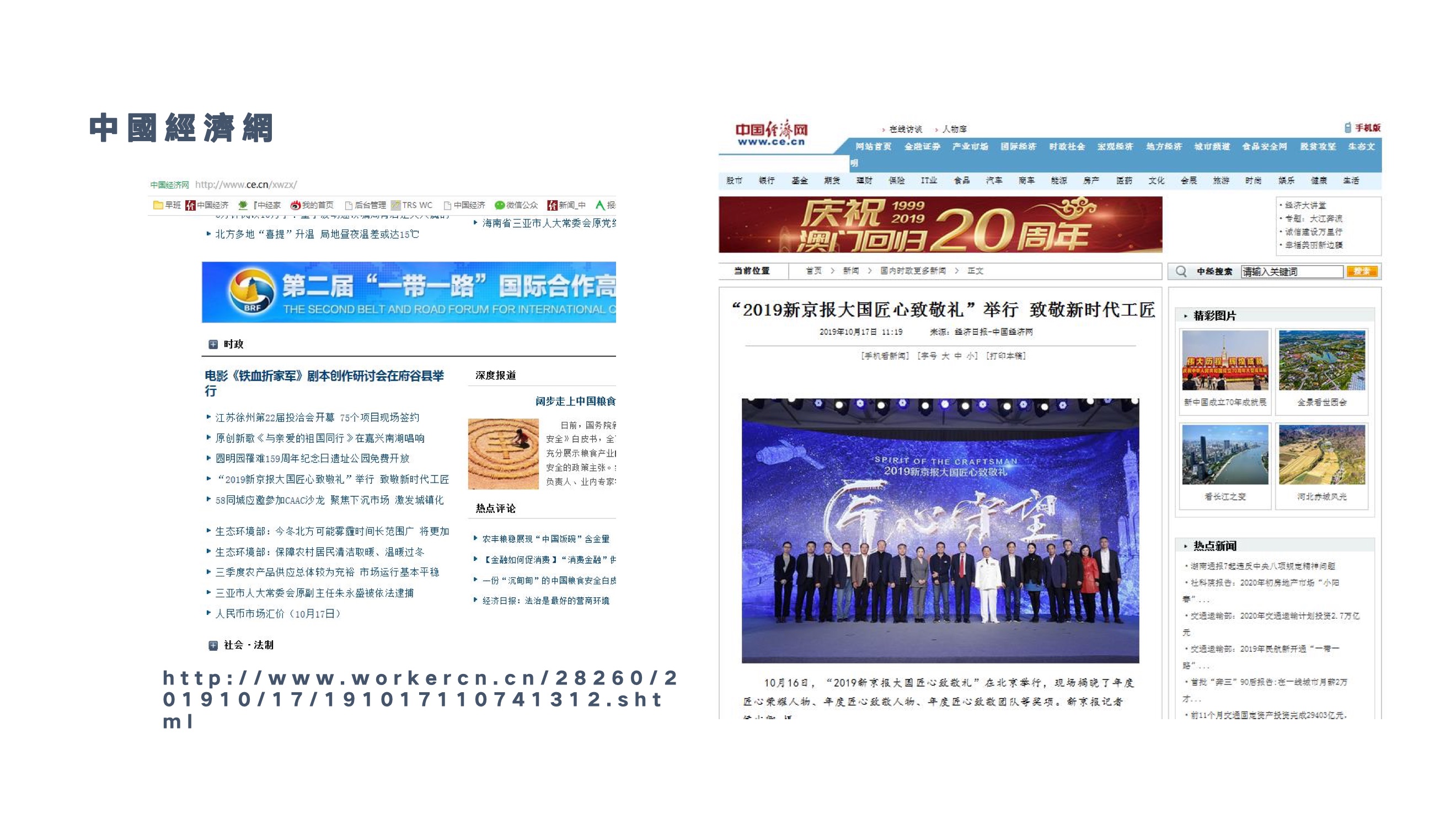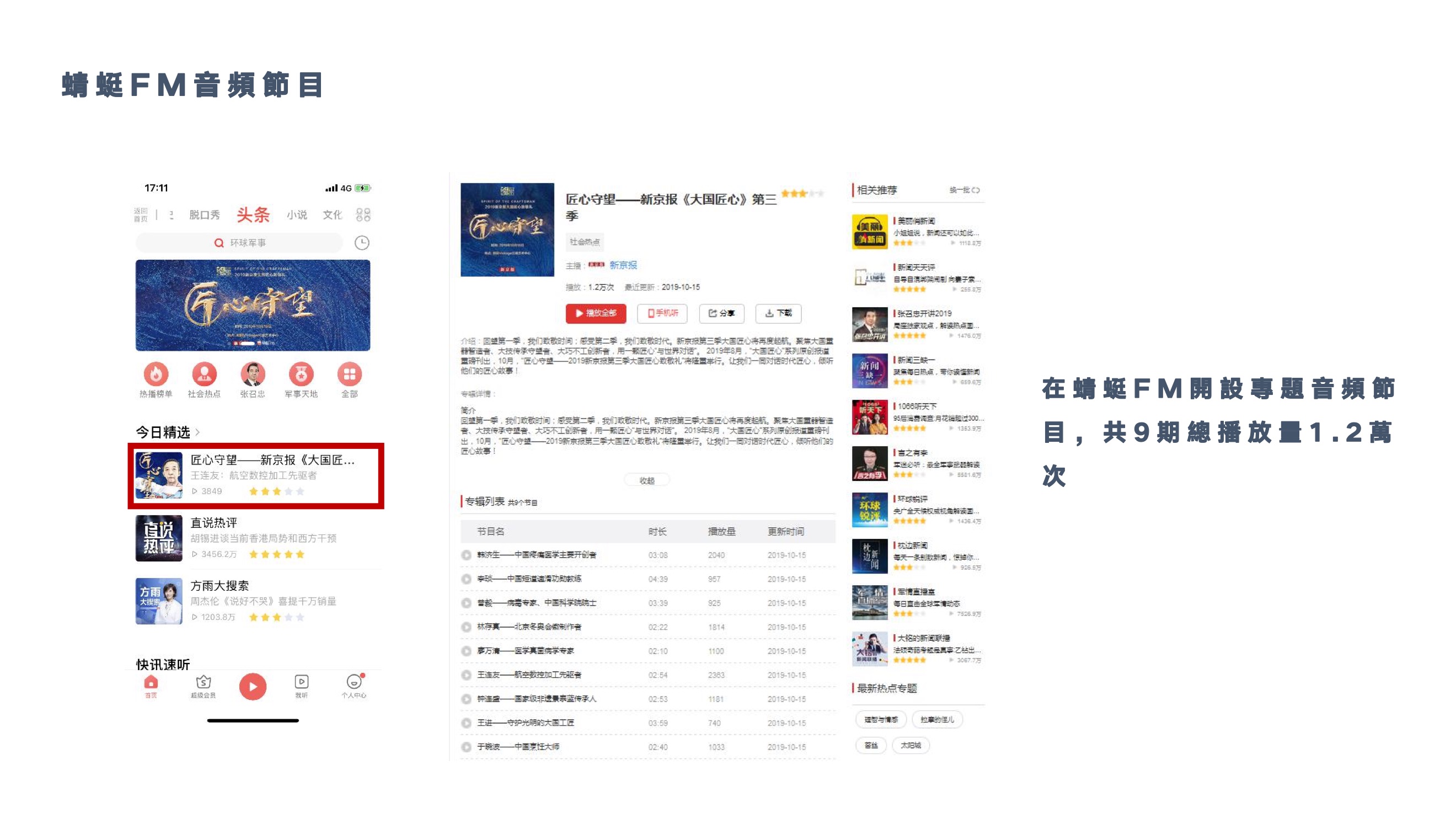 《大国匠心》系列报道及颁奖活动,聚焦大国重器制造者、核心技艺传承者、匠心品牌造就者,记录品质坚守背后蕴藏的智慧和思考,讲述“中国智造”、“中国创造”故事。活动现场颁发匠心致敬人物、匠心致敬品牌等年度致敬奖项,通过深层的讲述与弘扬让工匠精神再次引发社会共鸣,在社会各界引起剧烈反响。