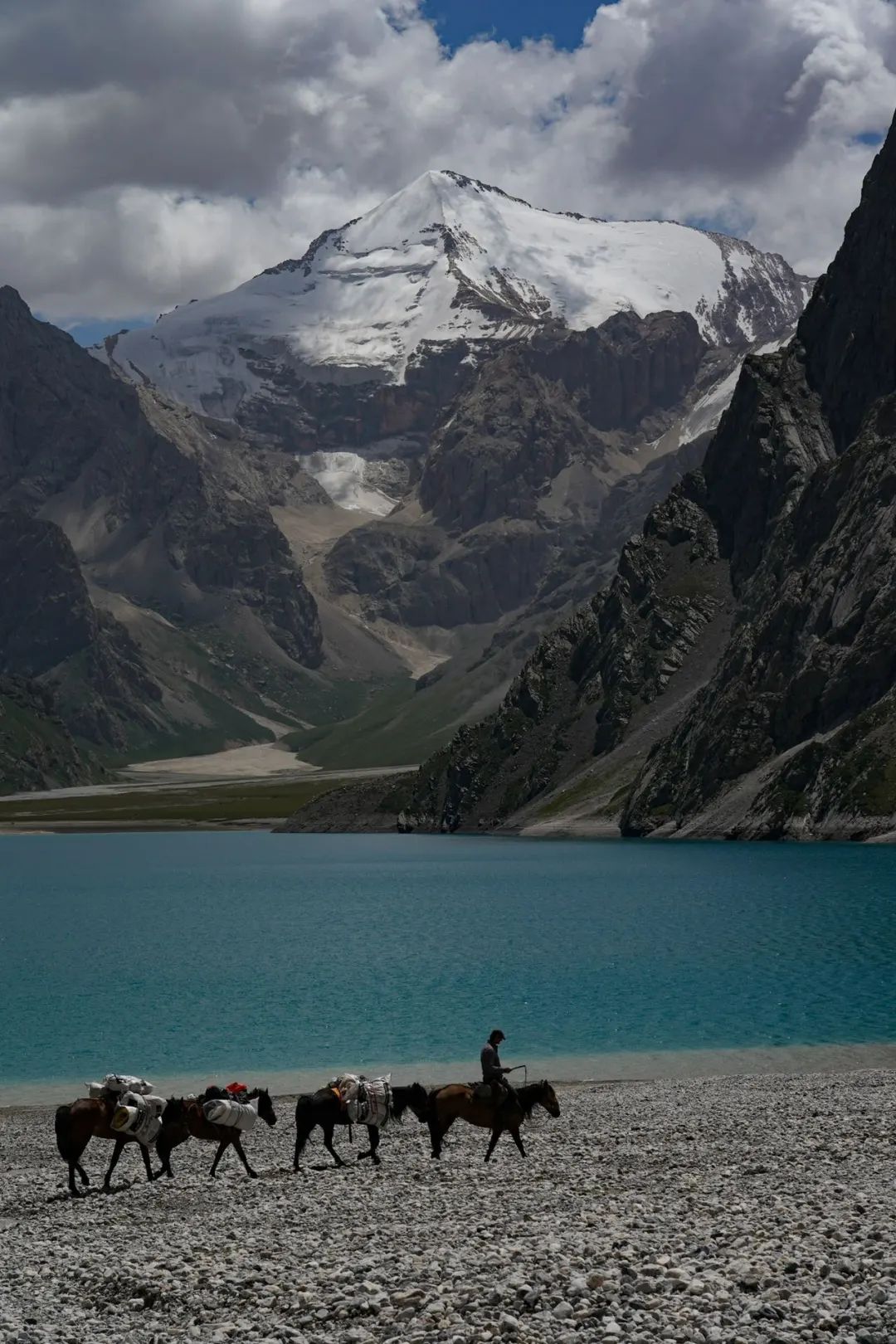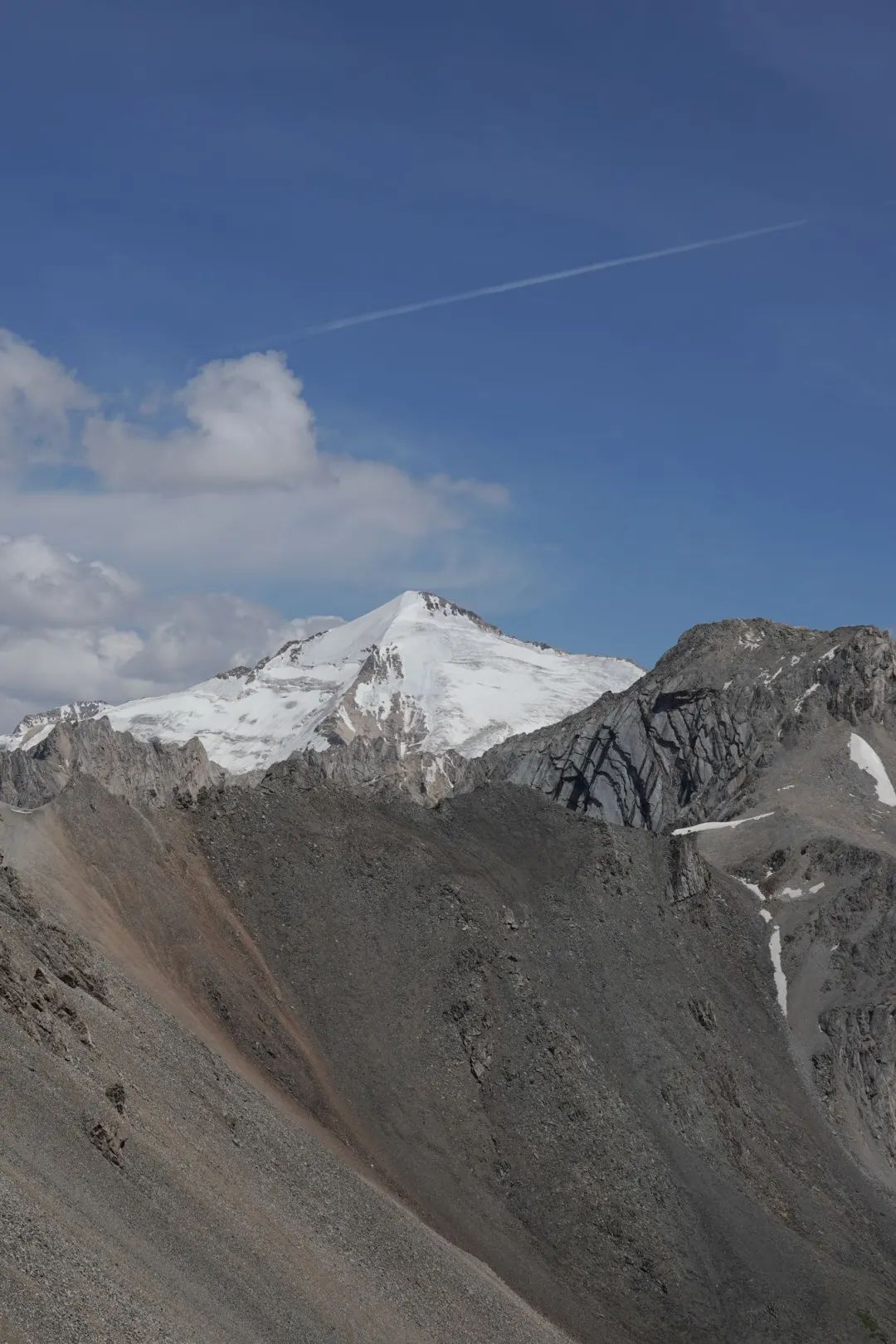 一鼓作气爬上去之后,又是无尽的碎石坡下山···但是也看到了一个熟悉的“身影”----那座与冈仁波齐长得有几分相似的雪山。